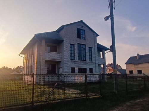Коттедж расположен в тихом и престижном месте Барановичей. Удобный асфальтированный подъезд. Приветливые соседи. Ухоженный и ровный участок 15 соток в частной собственности, огорожен. Просторный крепкий дом под отделку. Материал стен блоки, обложен кирпичом, крыша шифер. Дом 2 этажа, 6 комнат, 2 балкона, 2 санузла, цокольный этаж по периметру дома. Коммуникации – все центральные. Водопровод, канализация, электричество разведено по дому. Отопление - твердотопливный котел, газ подведен к дому.