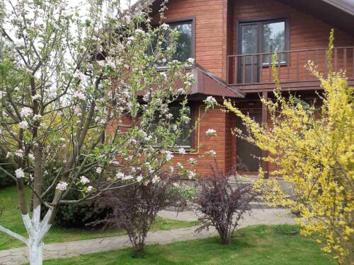 На участке имеются хозяйственные постройки (два домика для животных, клетки для кроликов, две теплицы), плодовый сад (вишня, черешня, груши, яблони, сливы), ягодные кусты, цветы, искусственный водоем в саду. Хорошее транспортное сообщение - ежедневно с небольшим интервалом ходят маршрутки и автобус. В шаговой доступности - остановки общественного транспорта, продуктовые магазины, школы. Рядом лес, красивое естественное озеро.