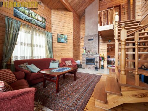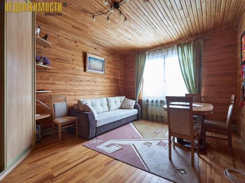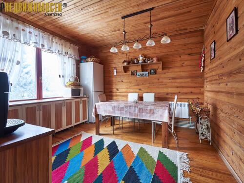 Молодечненское направление, 10 км от г. Заславль. Дом общей площадью 135.6 м2 (2013 г.п.), два уровня, красивая лестница из ясеня, второй свет (6 метров), французский камин, 5 жилых комнат, кухня 14.0 м2, 2 с/у, топочная, свет, интернет, телефон, газовое отопление, водопровод, канализация, видеонаблюдение. Огорожен живой изгородью, соседи с круглогодичным проживанием. Хозяйственный комплекс из клееного бруса, состоящий из гаража 30.3 м2, сарая, бани 94 м2. Красивый ландшафтный дизайн, водоем перед домом, стильная беседка 22 м2 из канадского дуба, печь-барбекю.
