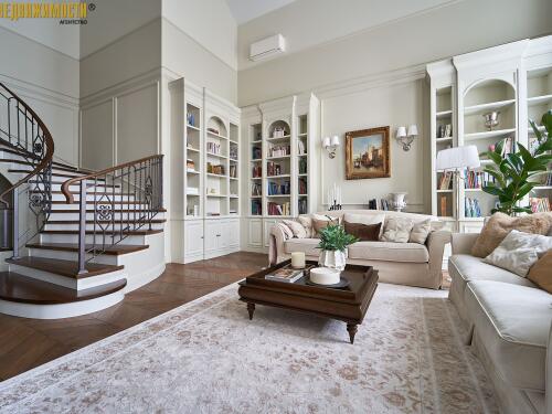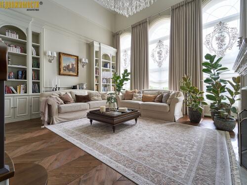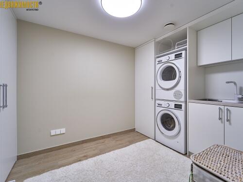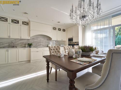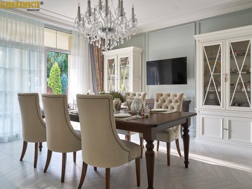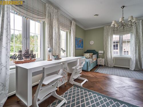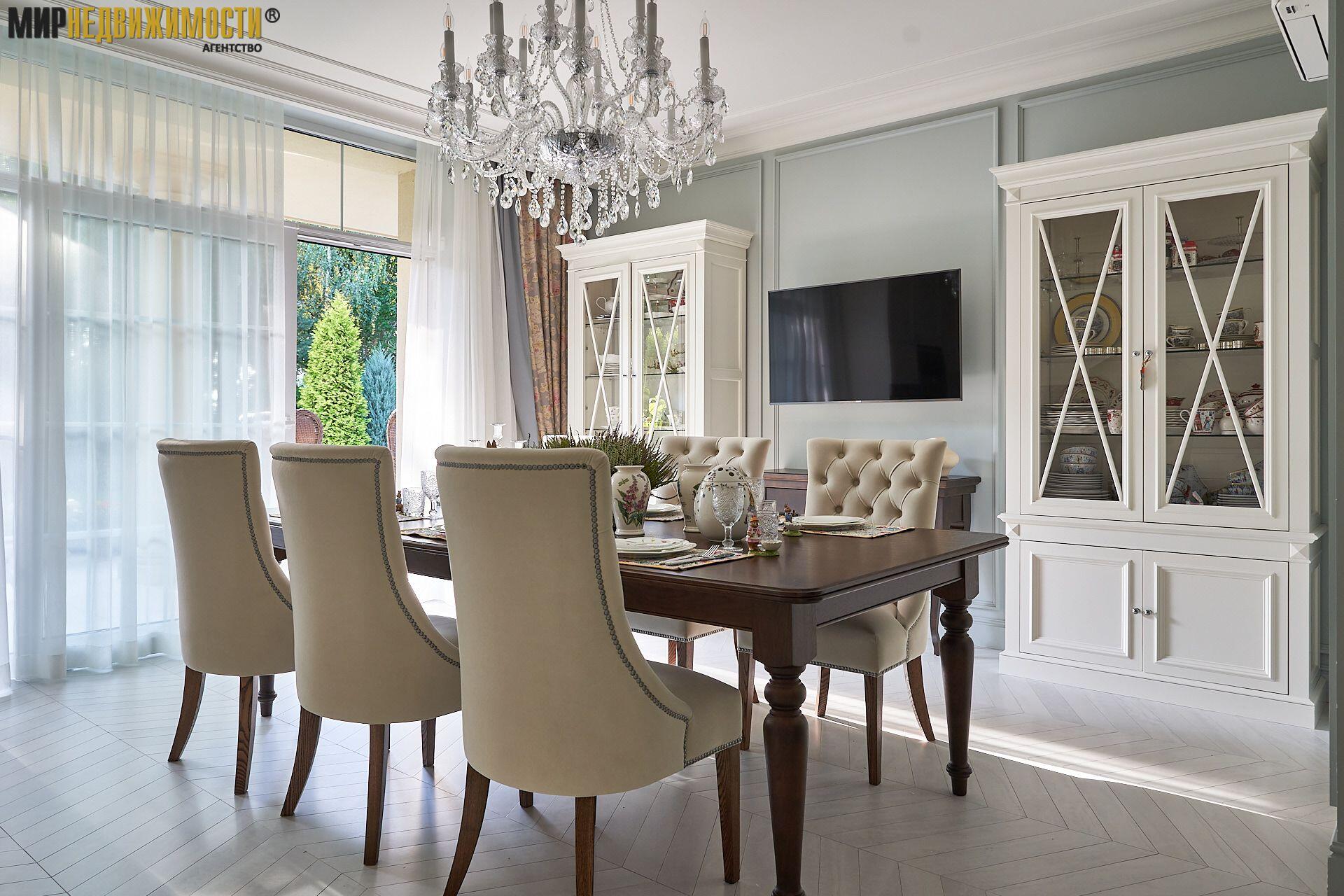 Дом гармонично сочетает в себе роскошь и функциональность. Высота потолков от 3,5 м до 6м. На 1 этаже расположены прихожая, гостиная, кухня (массив), укомплектована техникой итальянского производителя SMEG, с/у, спальня и гардеробная. 2 этаж – 2 спальни, 2 с/у, гардеробная, терраса. 3 этаж - 2 спальни, кабинет, с/у, терраса. В цокольном этаже расположены кинозал, спортзал, комната для хранения со стеллажами (40 м2), постирочная, оборудованная двумя стиральными машинами.