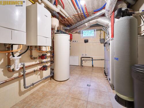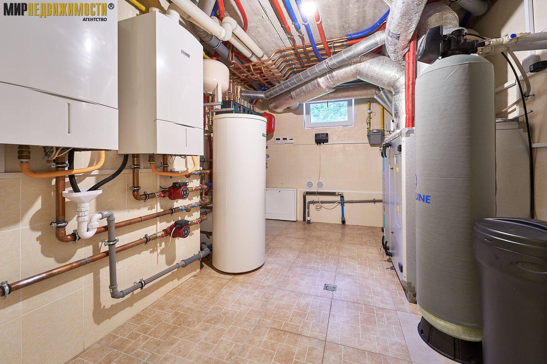 Дом оборудован двумя газовыми котлами (Bosch), заведен городской телефон и интернет, установлена система очистки и водоподготовки. В цокольном этаже есть возможность размещения небольшого бассейна, сауны.