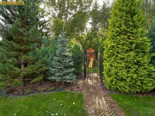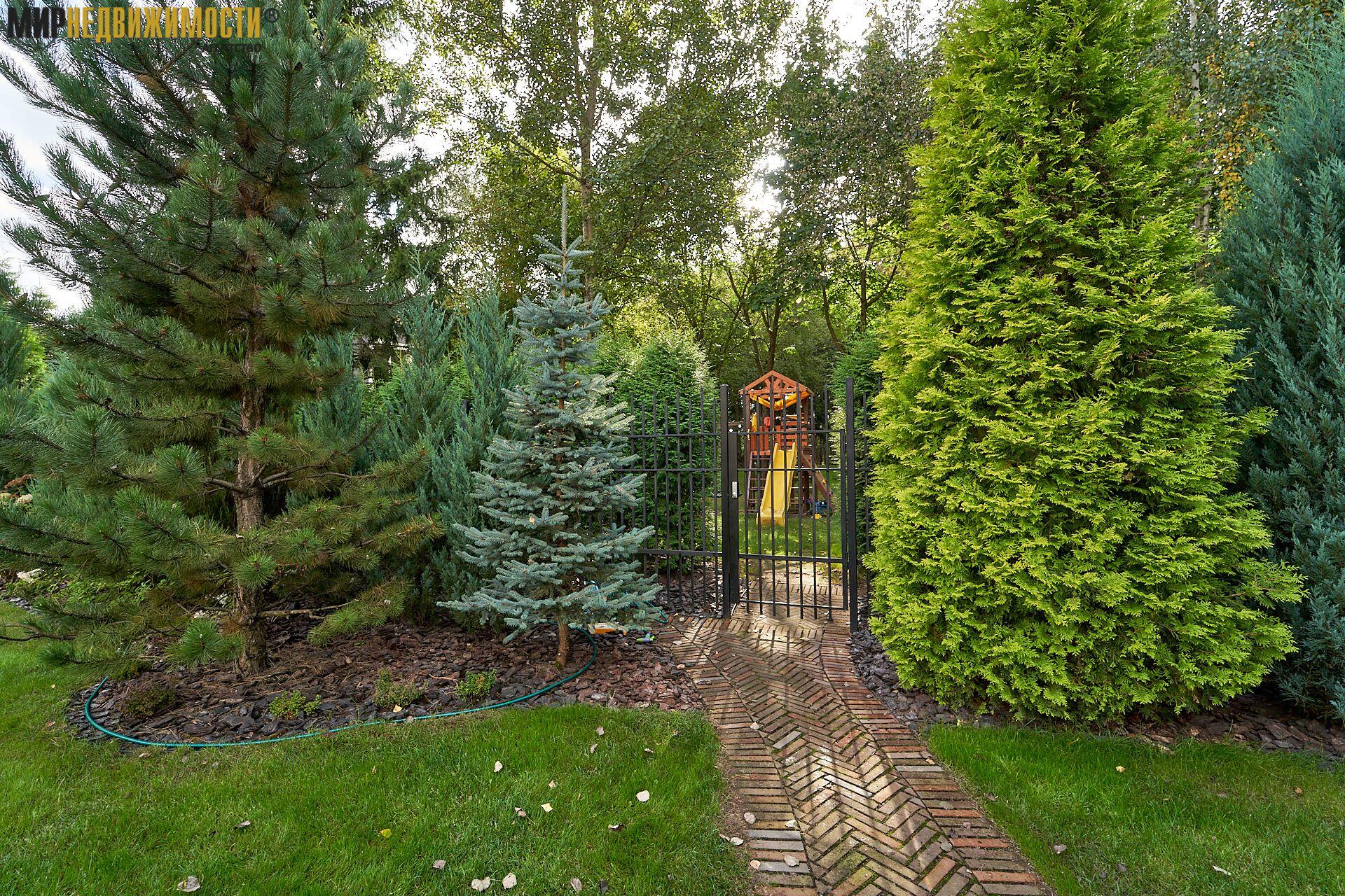 Ухоженный газон, декоративные растения создают уютную атмосферу загородной жизни.