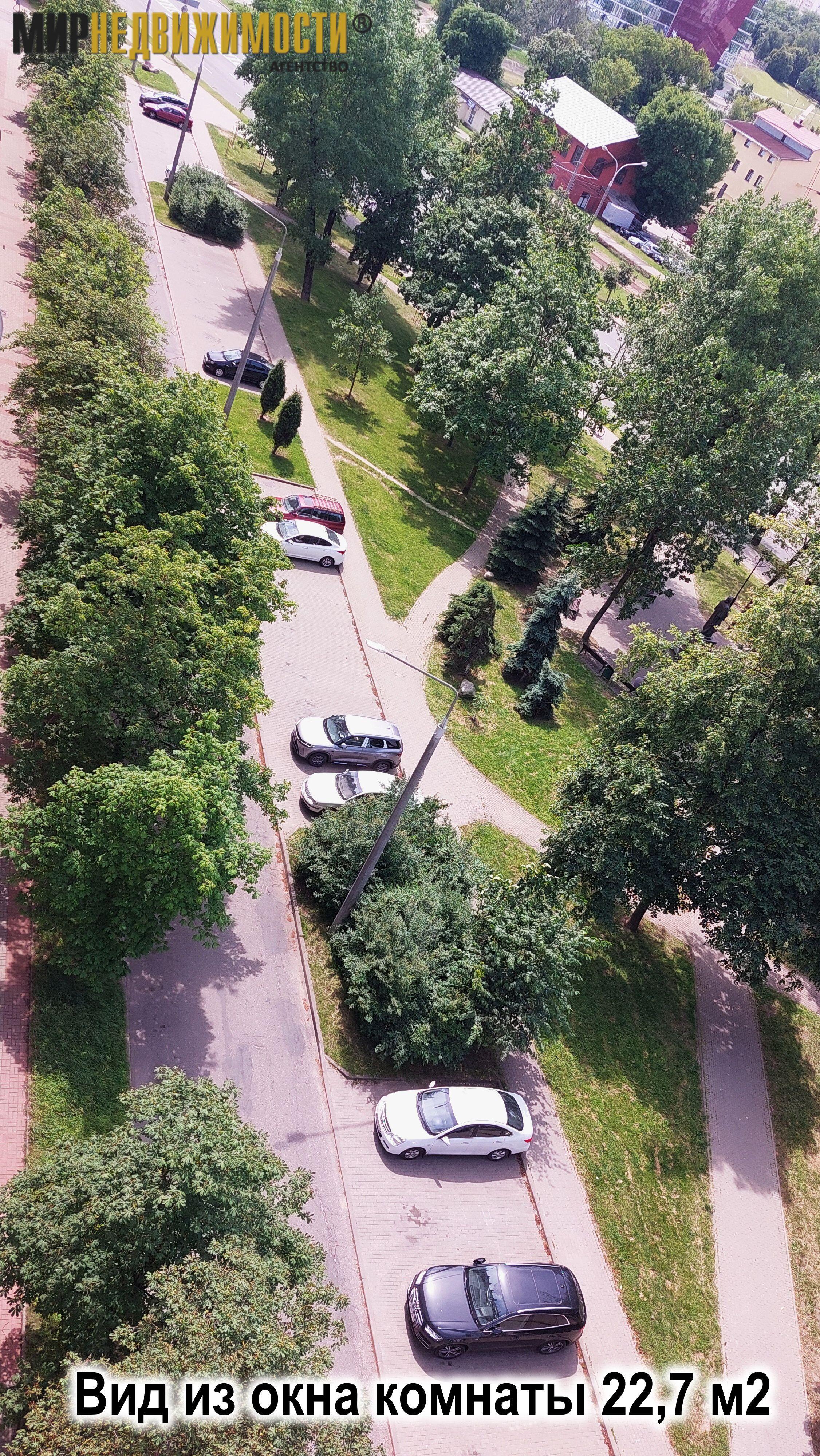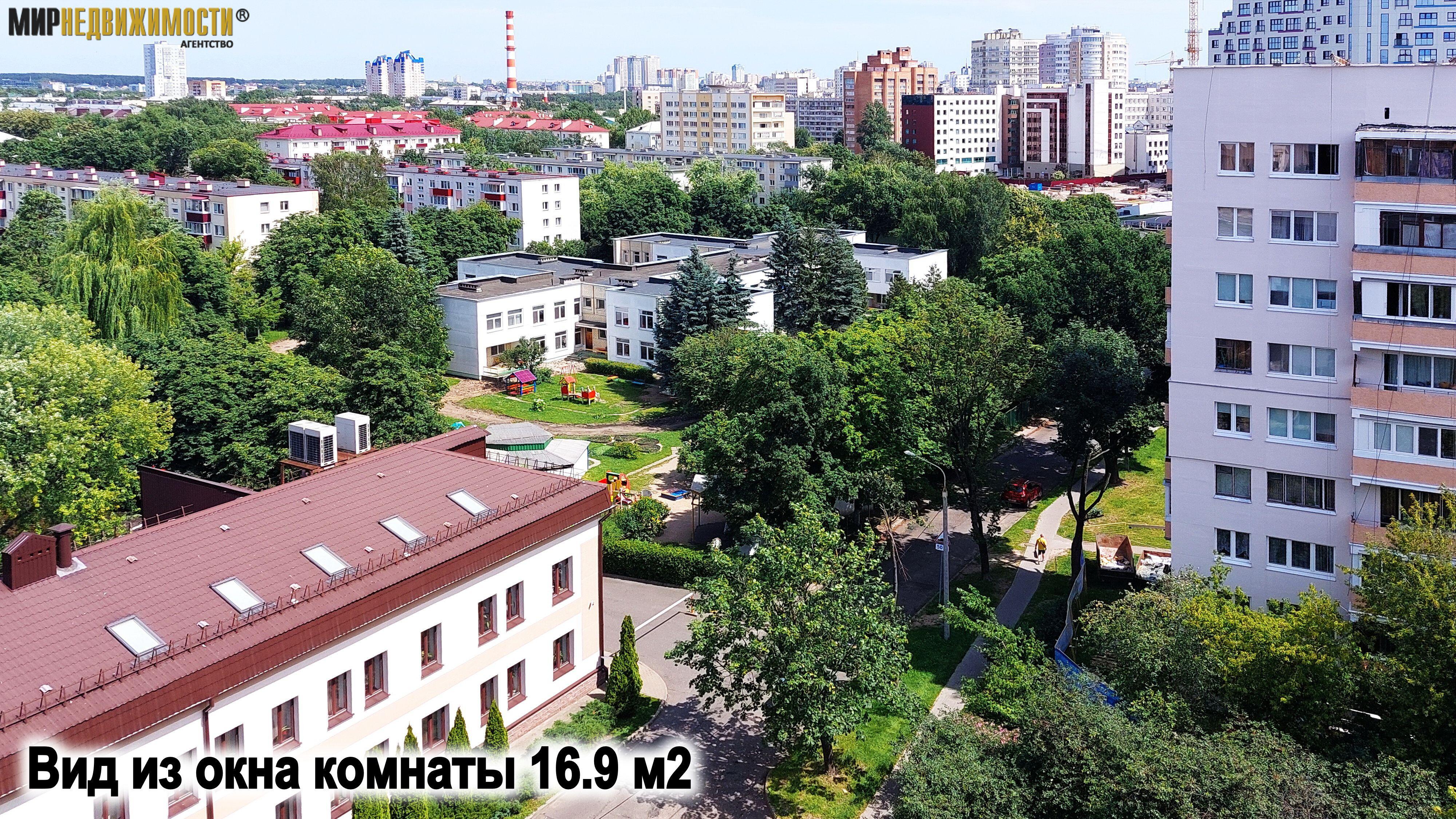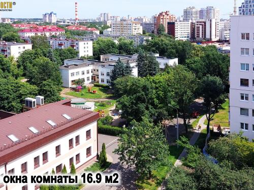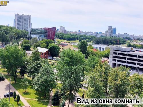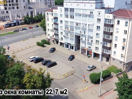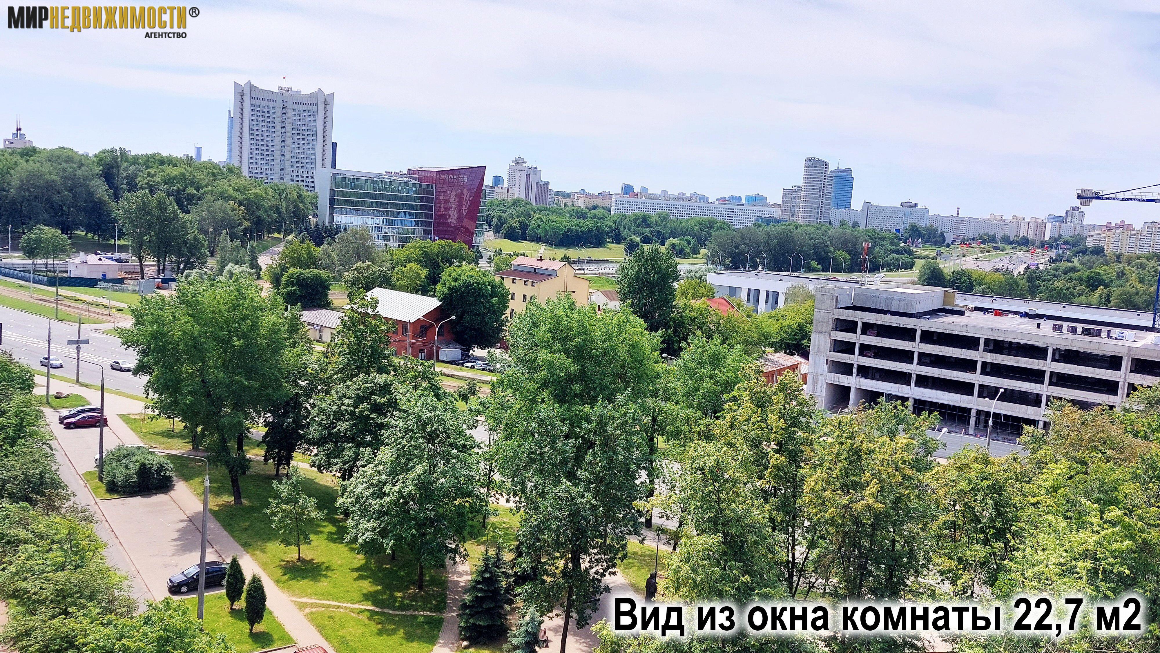 Из окон 9 этажа открываются прекрасные виды на город, Парк Победы, Стеллу «Минск — город-герой» и зелёные дворики квартала.