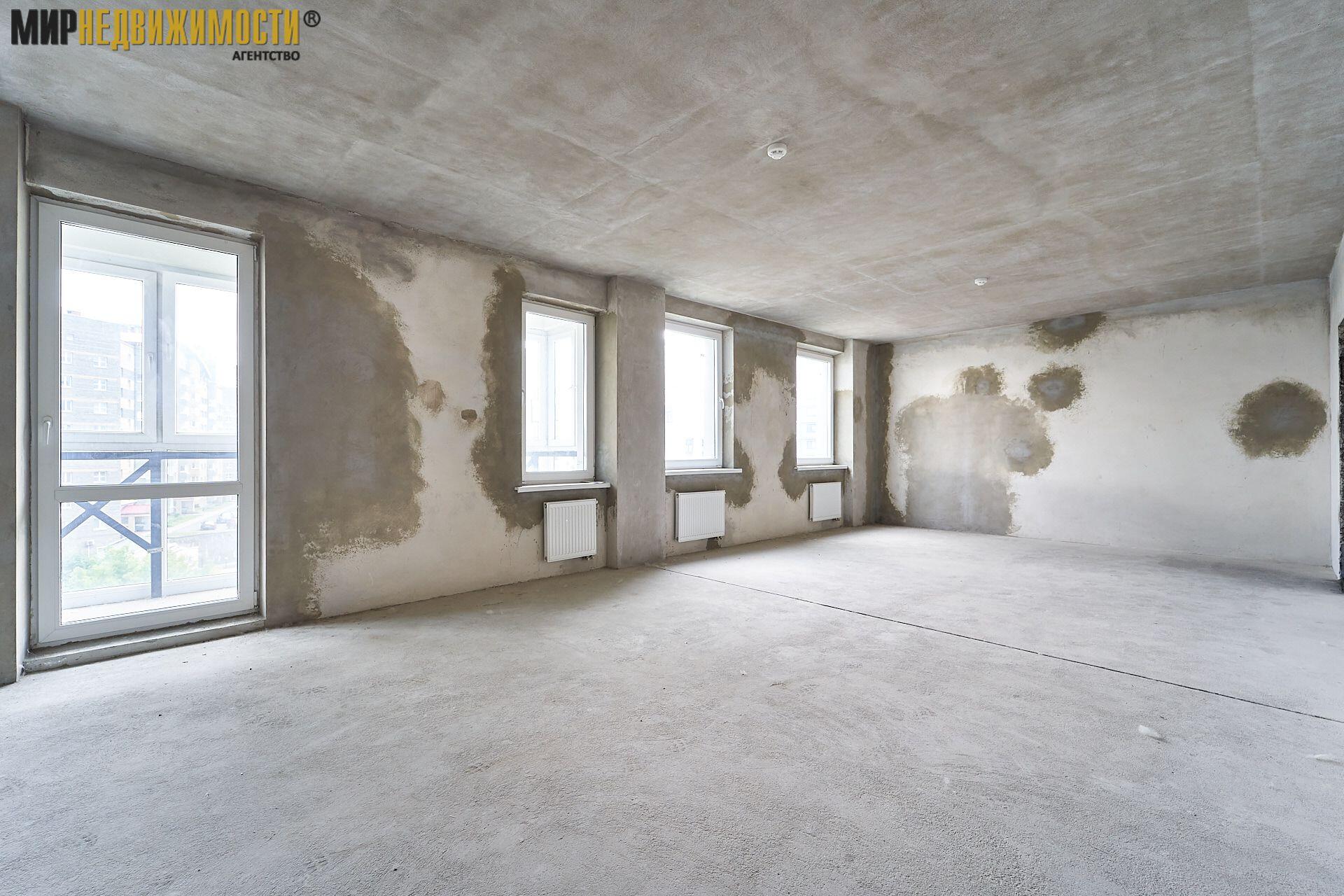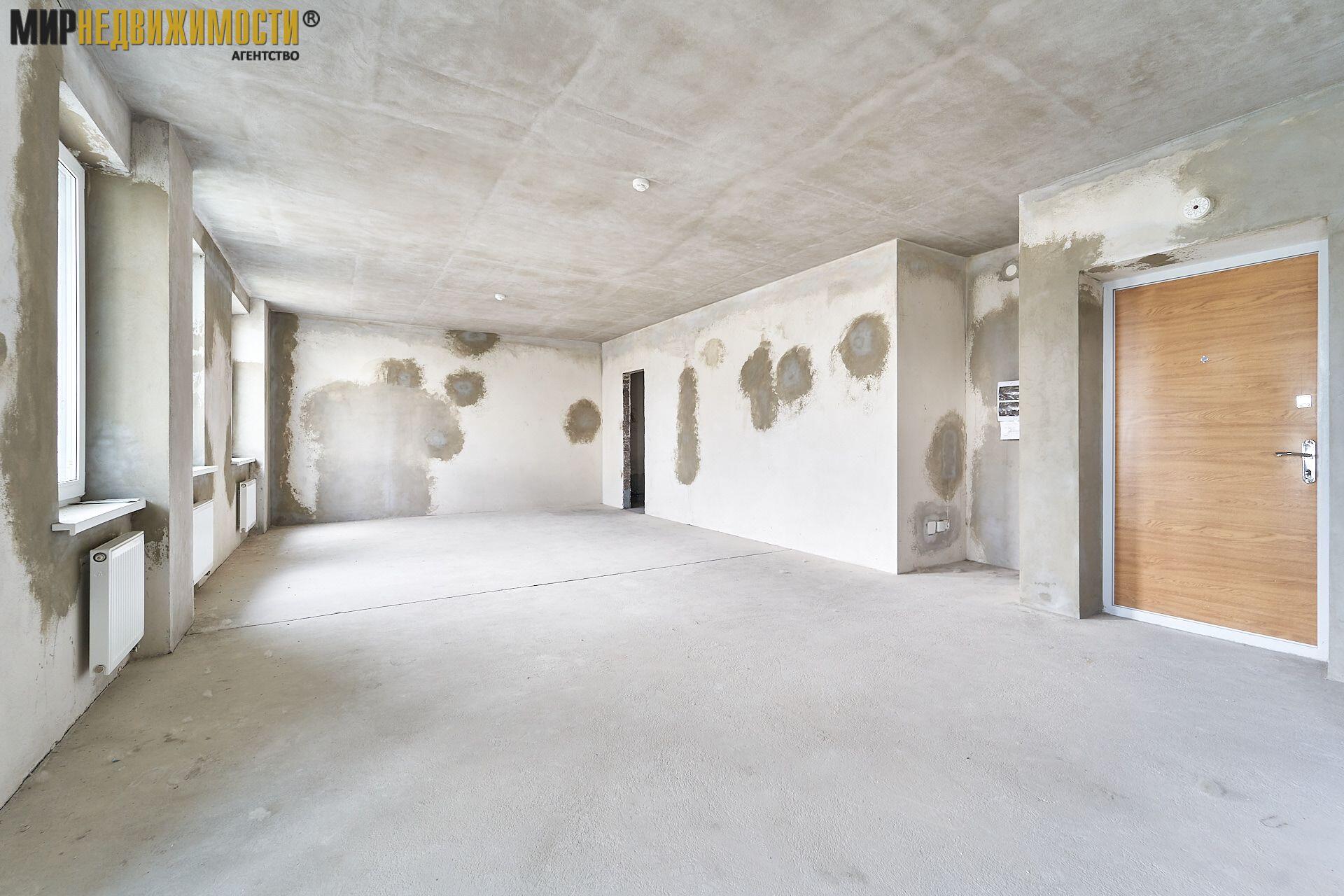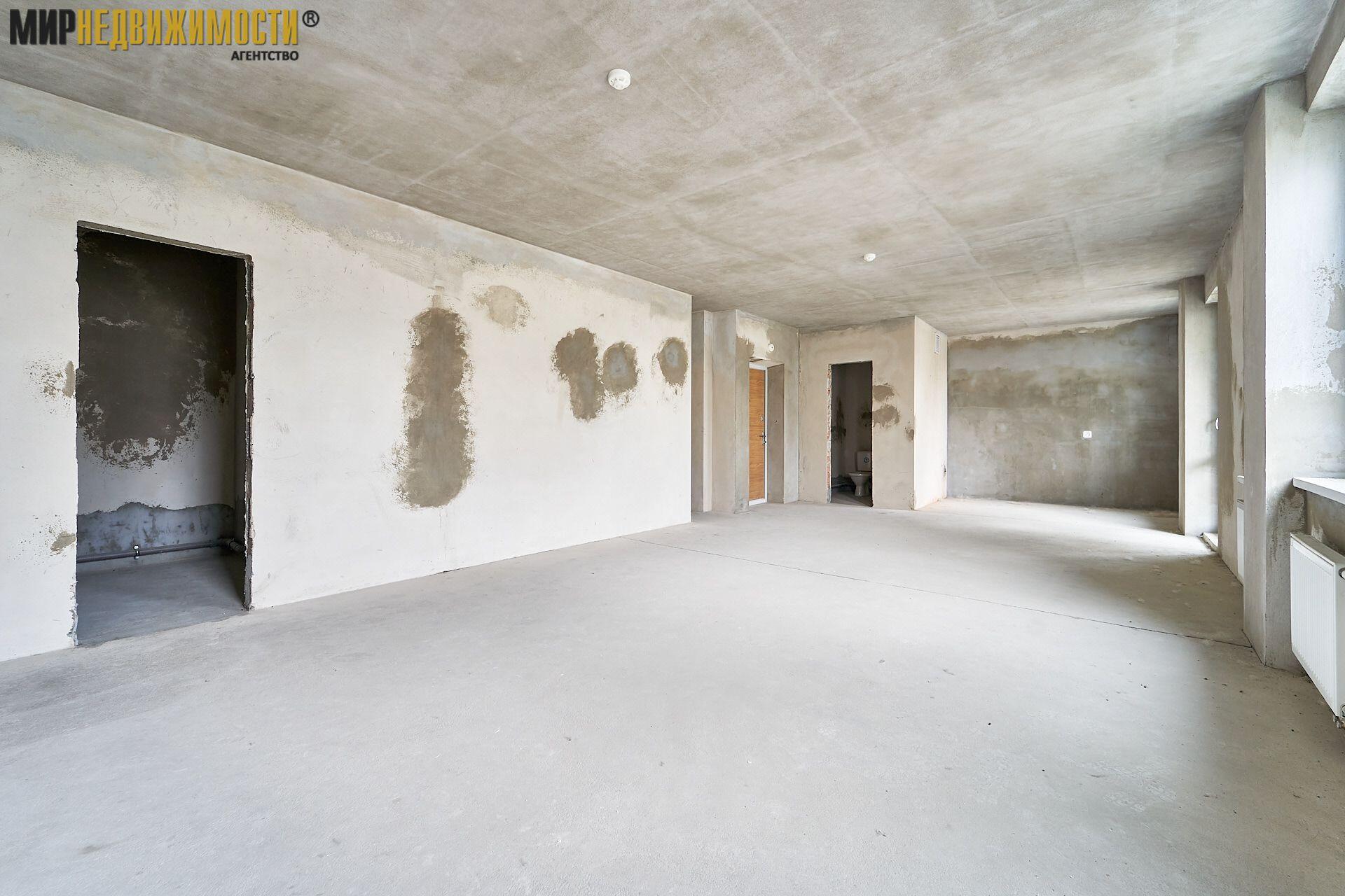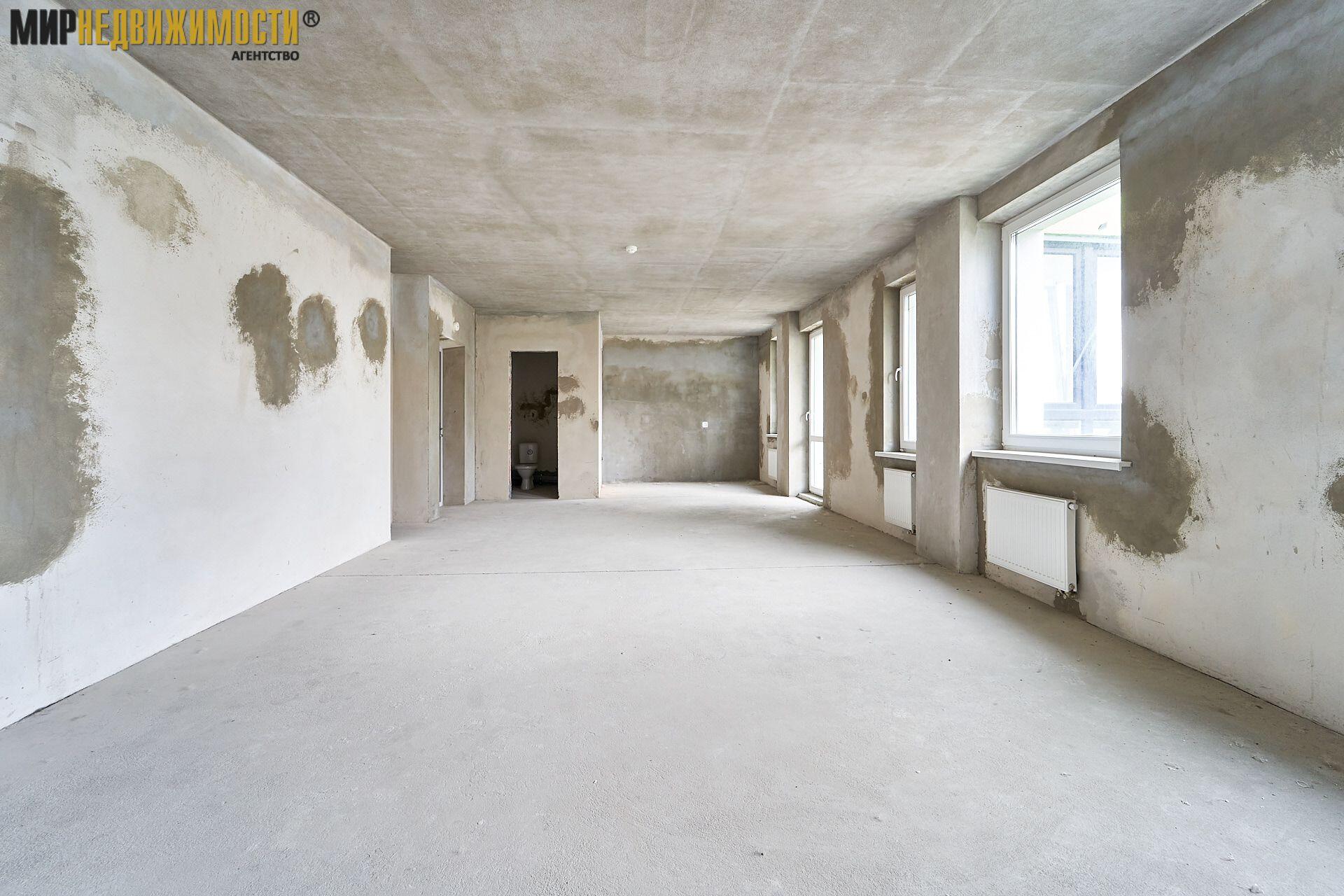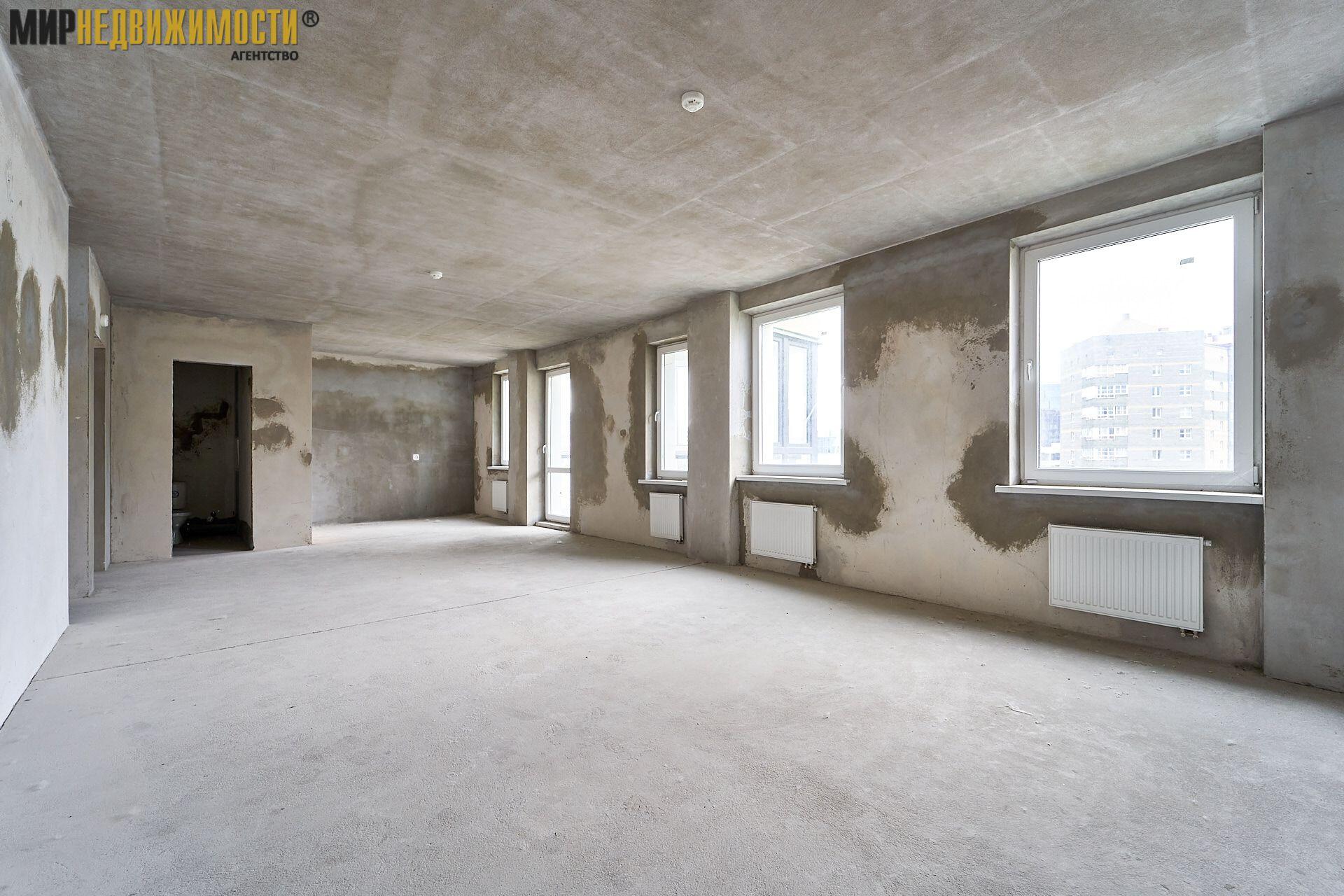 2-комнатная квартира без отделки, стены оштукатурены, на полу бетонная стяжка, окна ПВХ, входная дверь металлическая, 2 санузла. Окна квартиры с видом на Немигу.