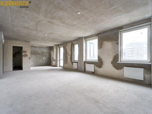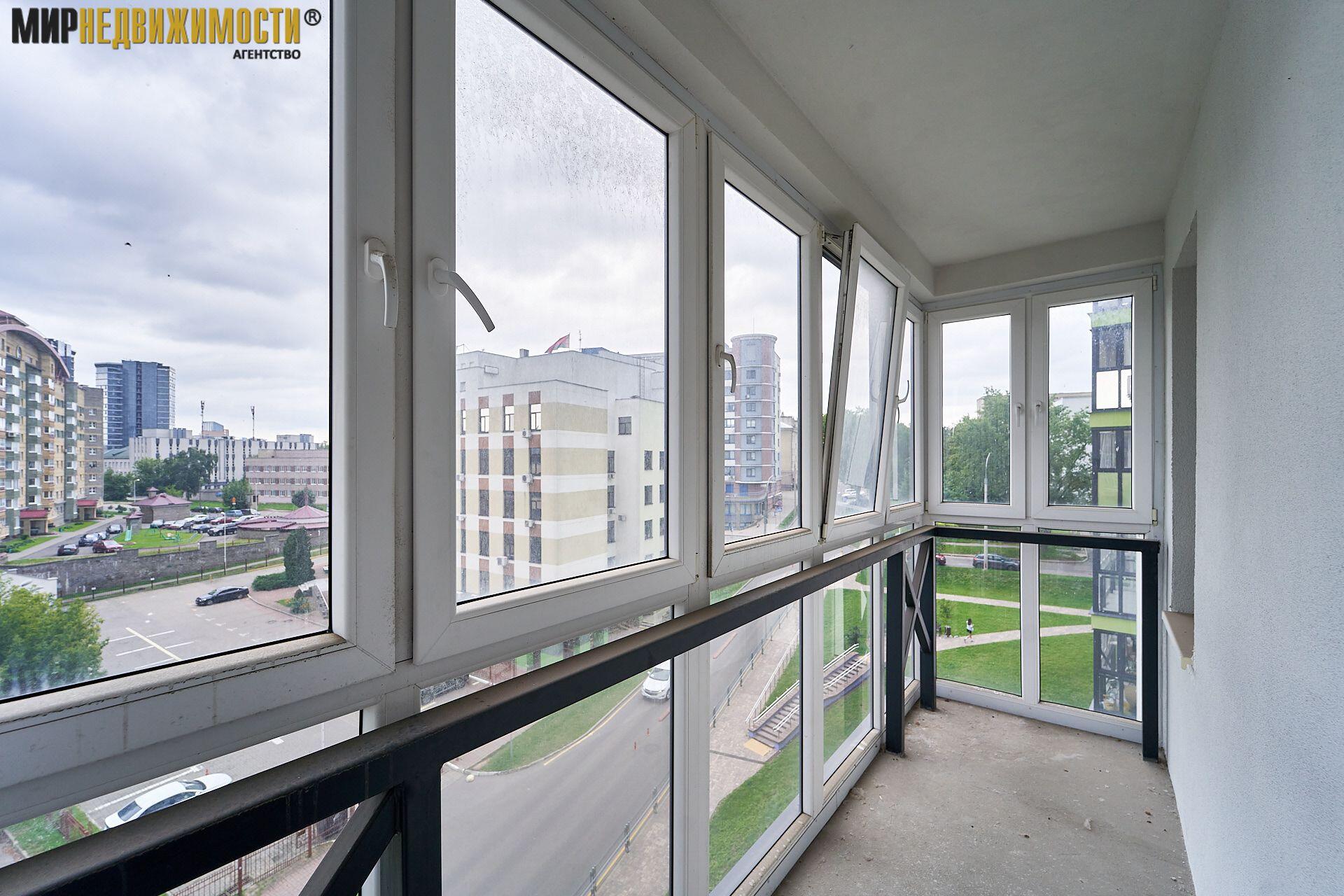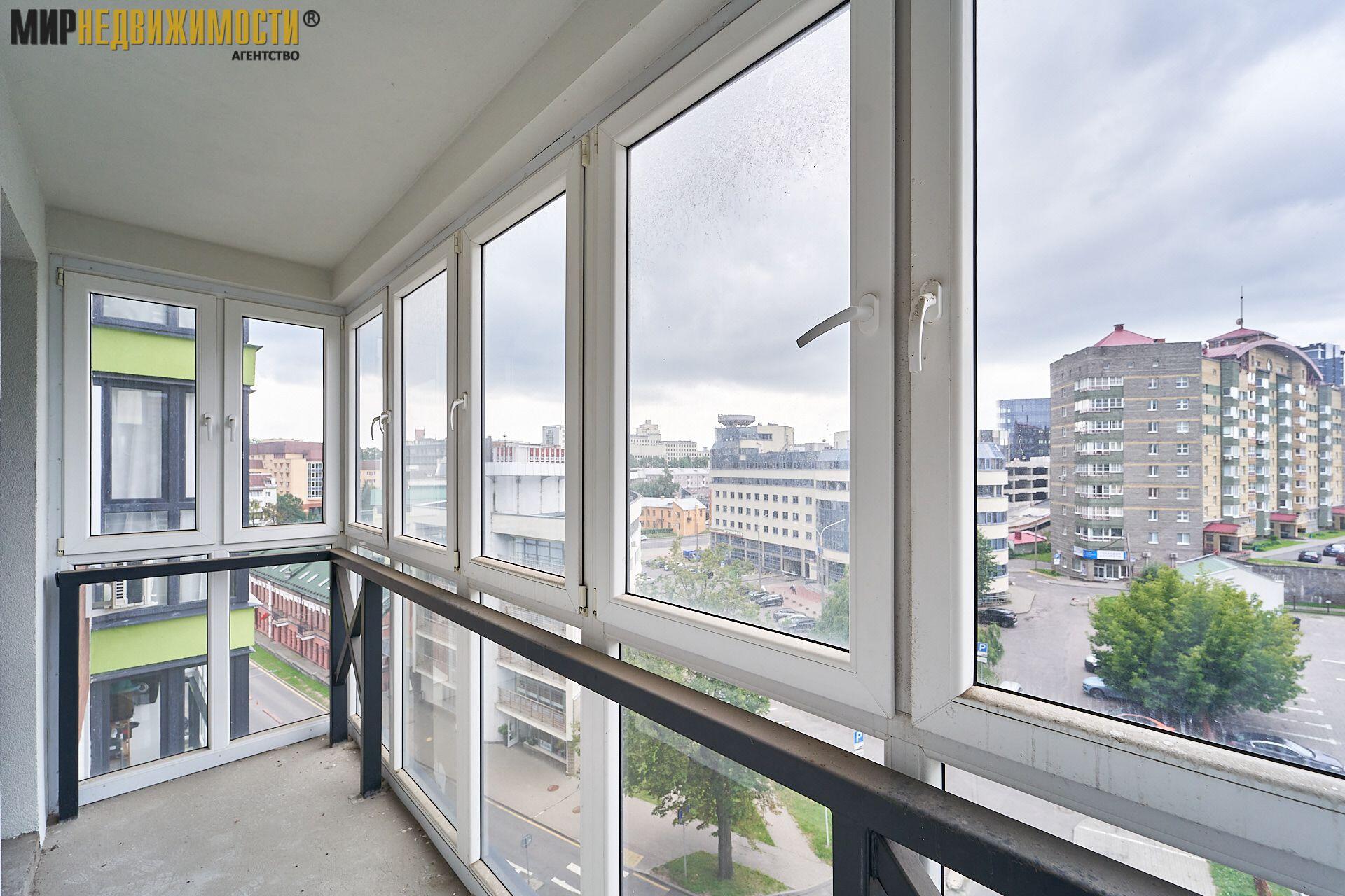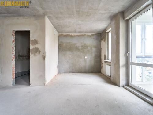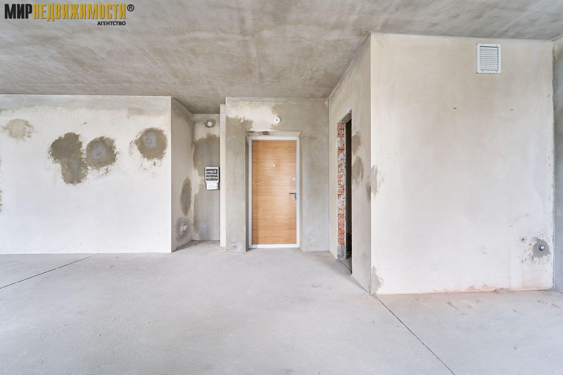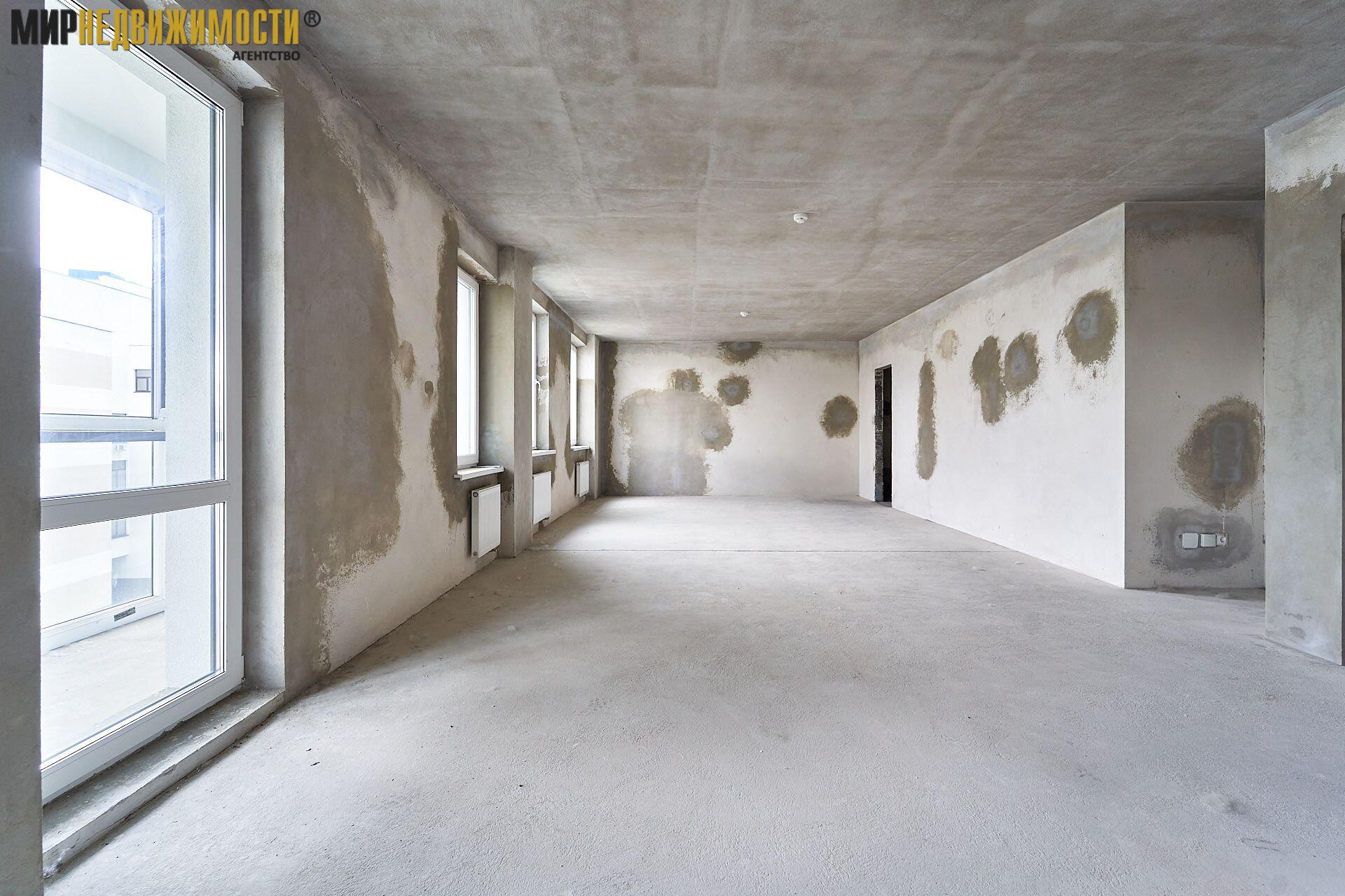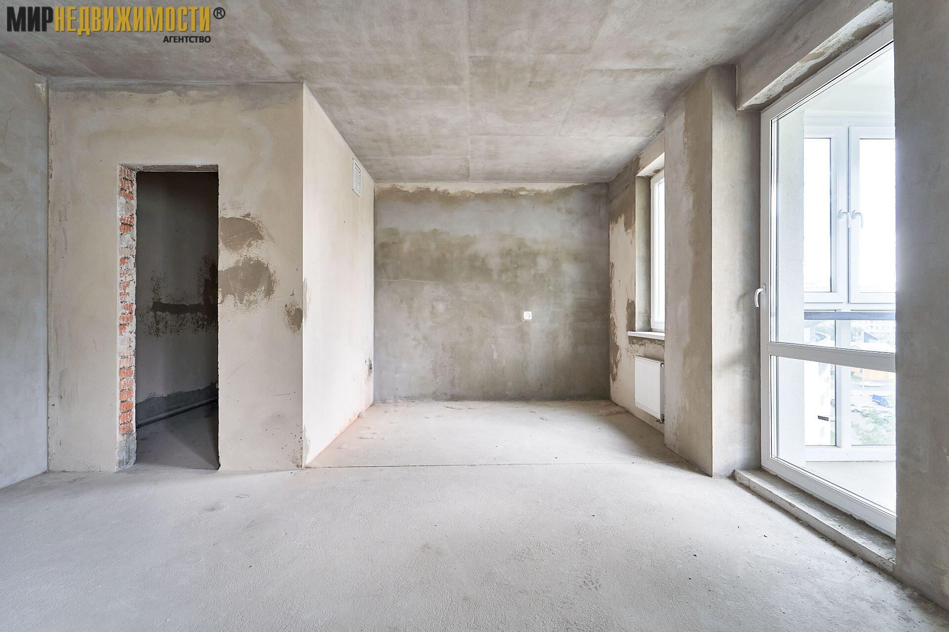 2-комнатная квартира без отделки, стены оштукатурены, на полу бетонная стяжка, окна ПВХ, входная дверь металлическая, 2 санузла. Окна квартиры с видом на Немигу.