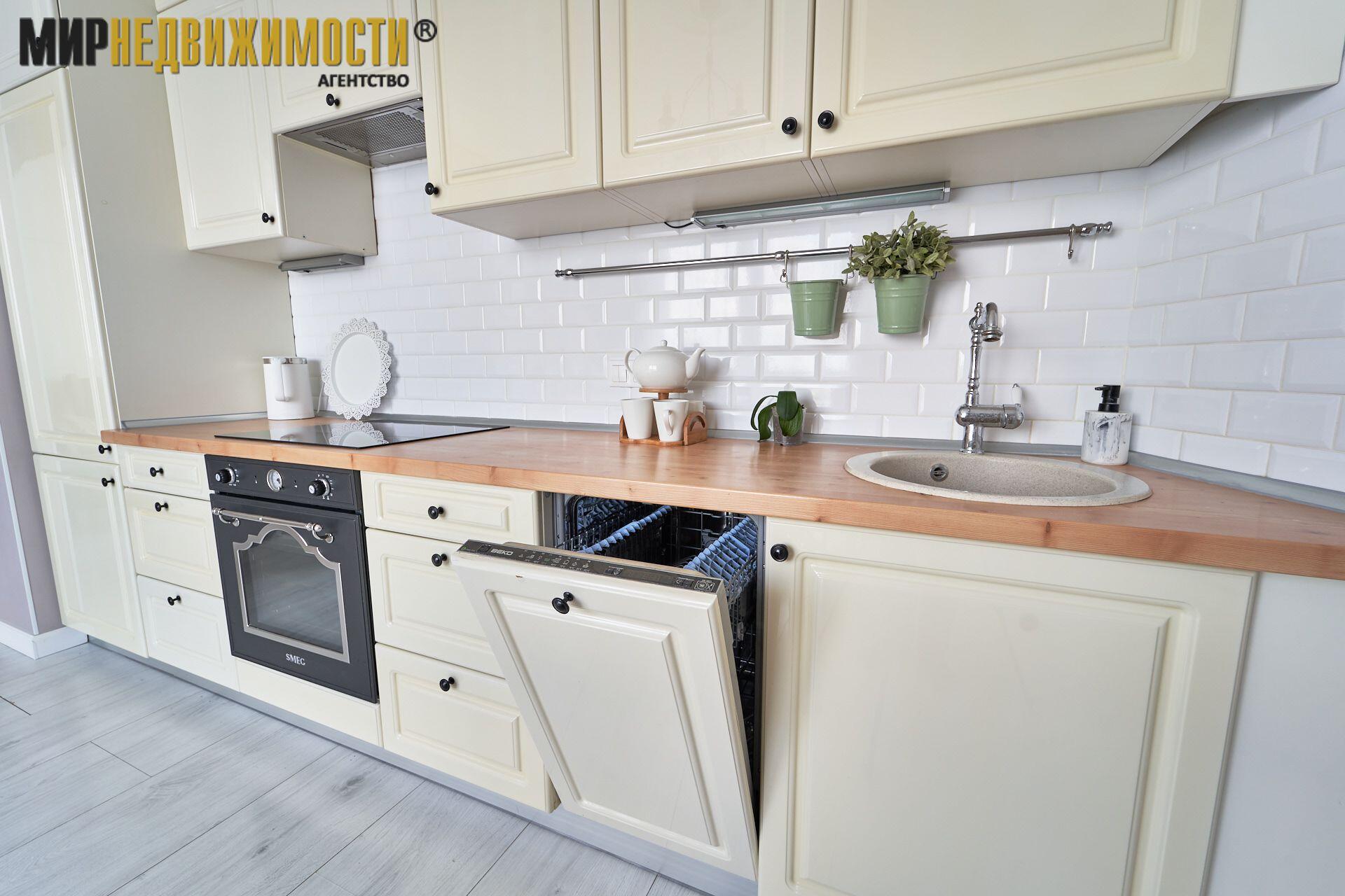 В квартире 2 изолированные комнаты, просторная кухня-гостиная с выделенной рабочей зоной. Два совмещенных санузла, один из которых оснащен душевой кабиной, второй - ванной. Квартира полностью укомплектована всей необходимой мебелью и техникой: посудомоечная, стиральная машина, духовой шкаф, телевизоры, электрокамин. Панорамные окна.