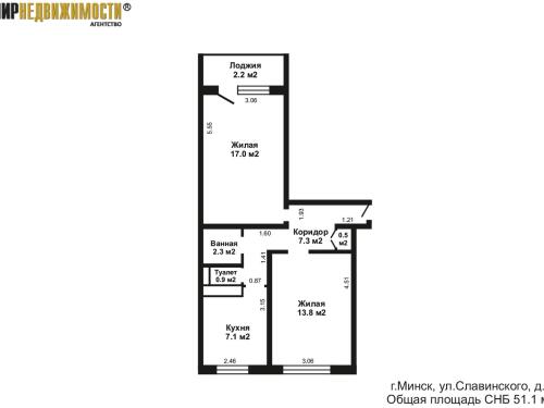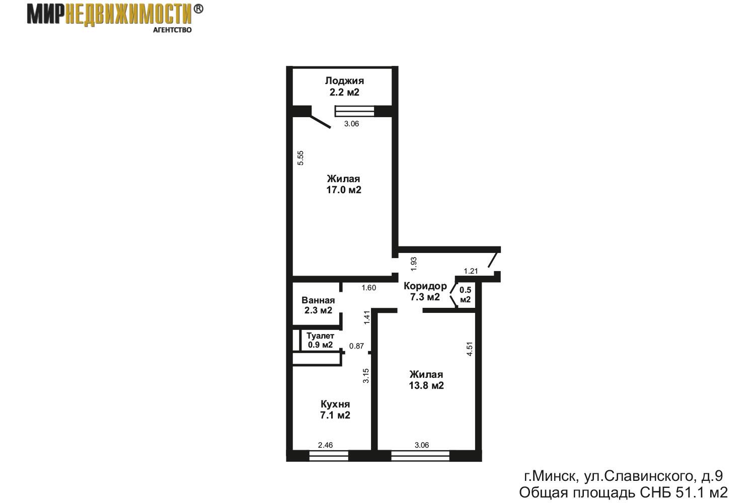 3. Квартира расположена на 5 этаже 9 этажного панельного дома 1986 года постройки. Площадь по СНБ 51,1 кв.м., общая 48,9 кв.м., жилая 30.8 кв.м., кухня 7,23 кв.м., комнаты изолированные, высота потолков 2,54 м, санузел раздельный, лоджия застеклена.