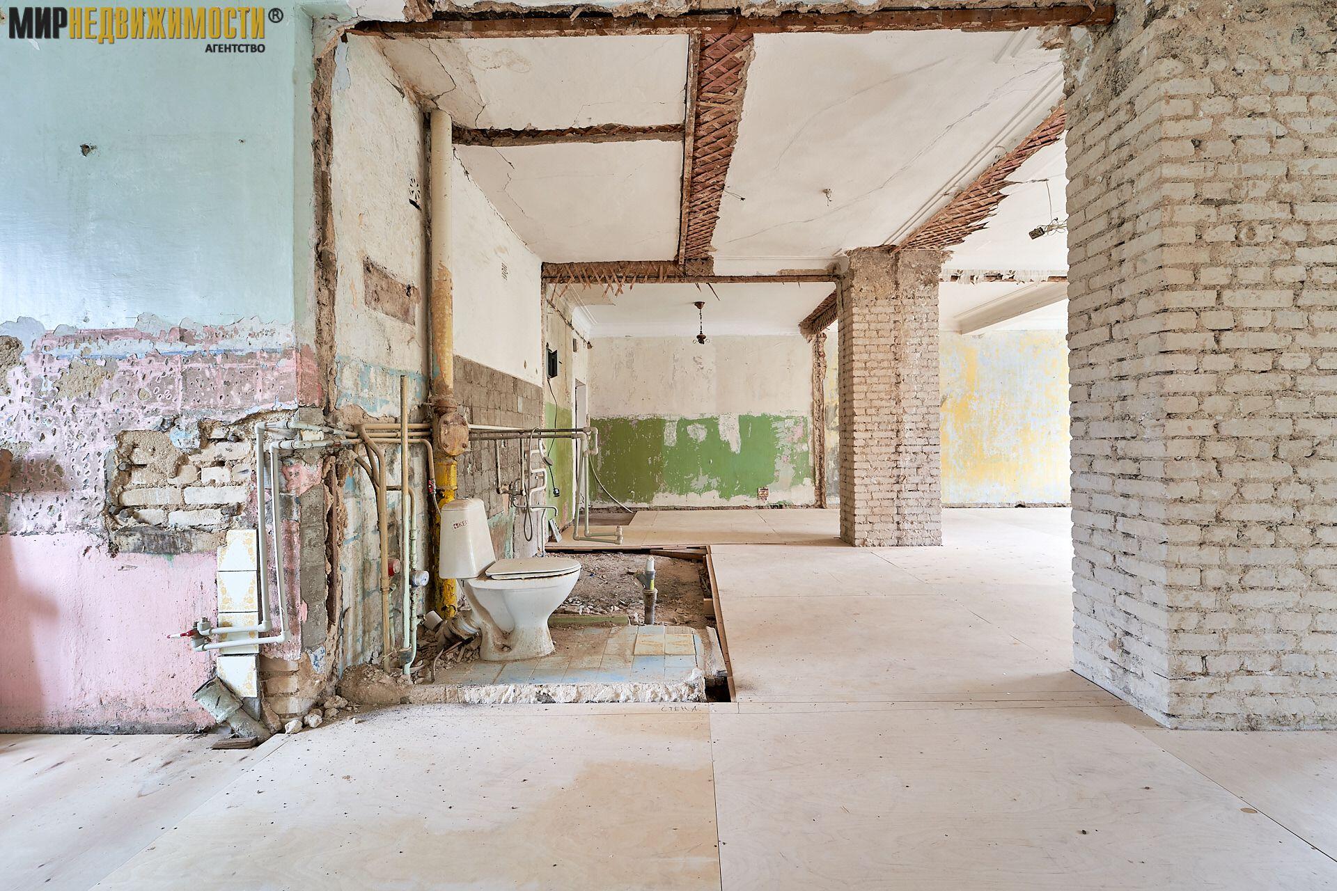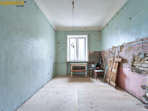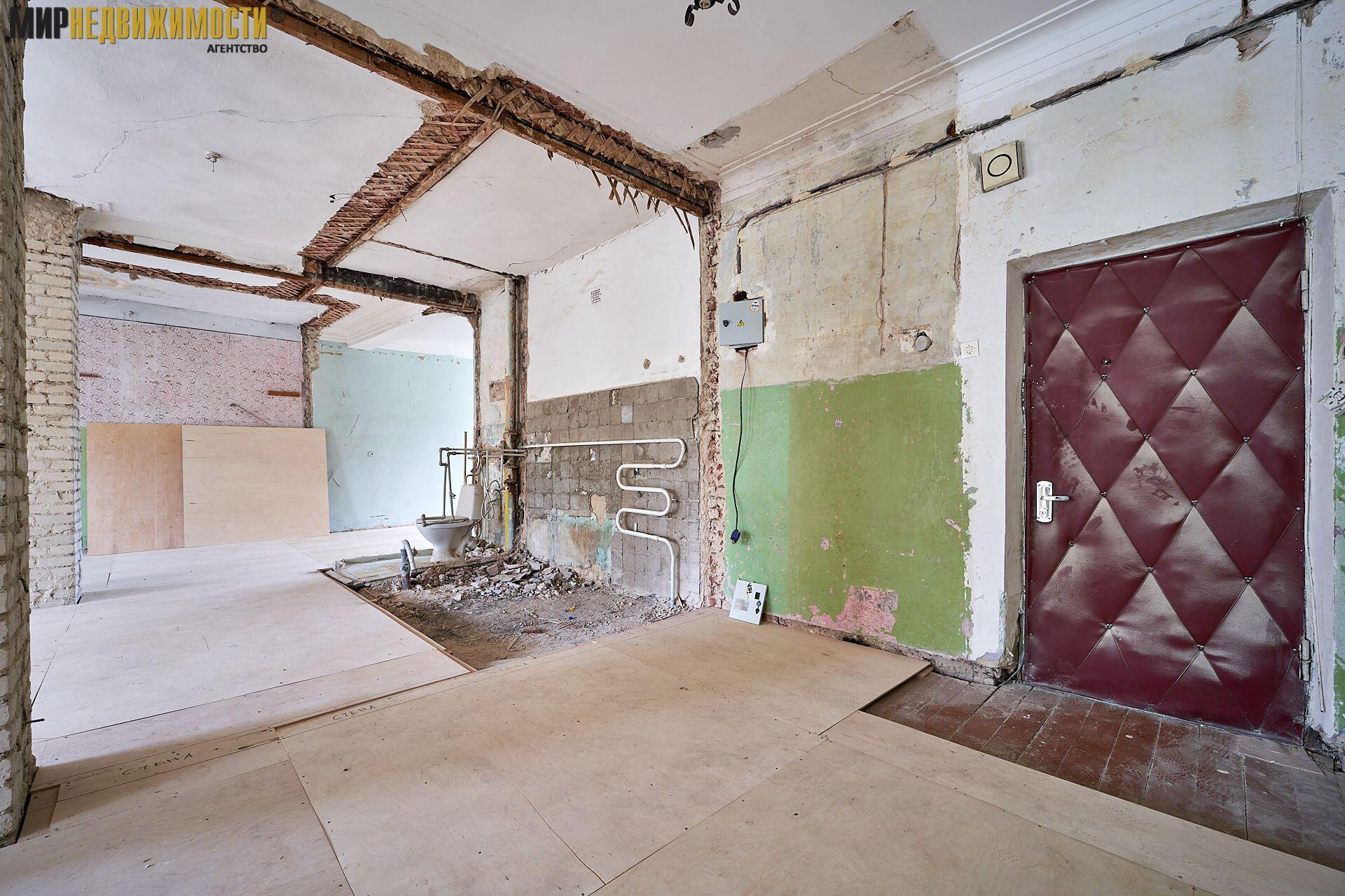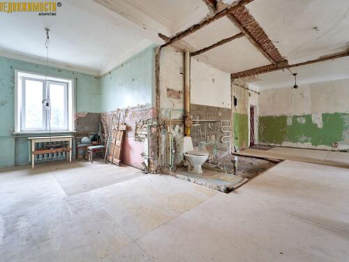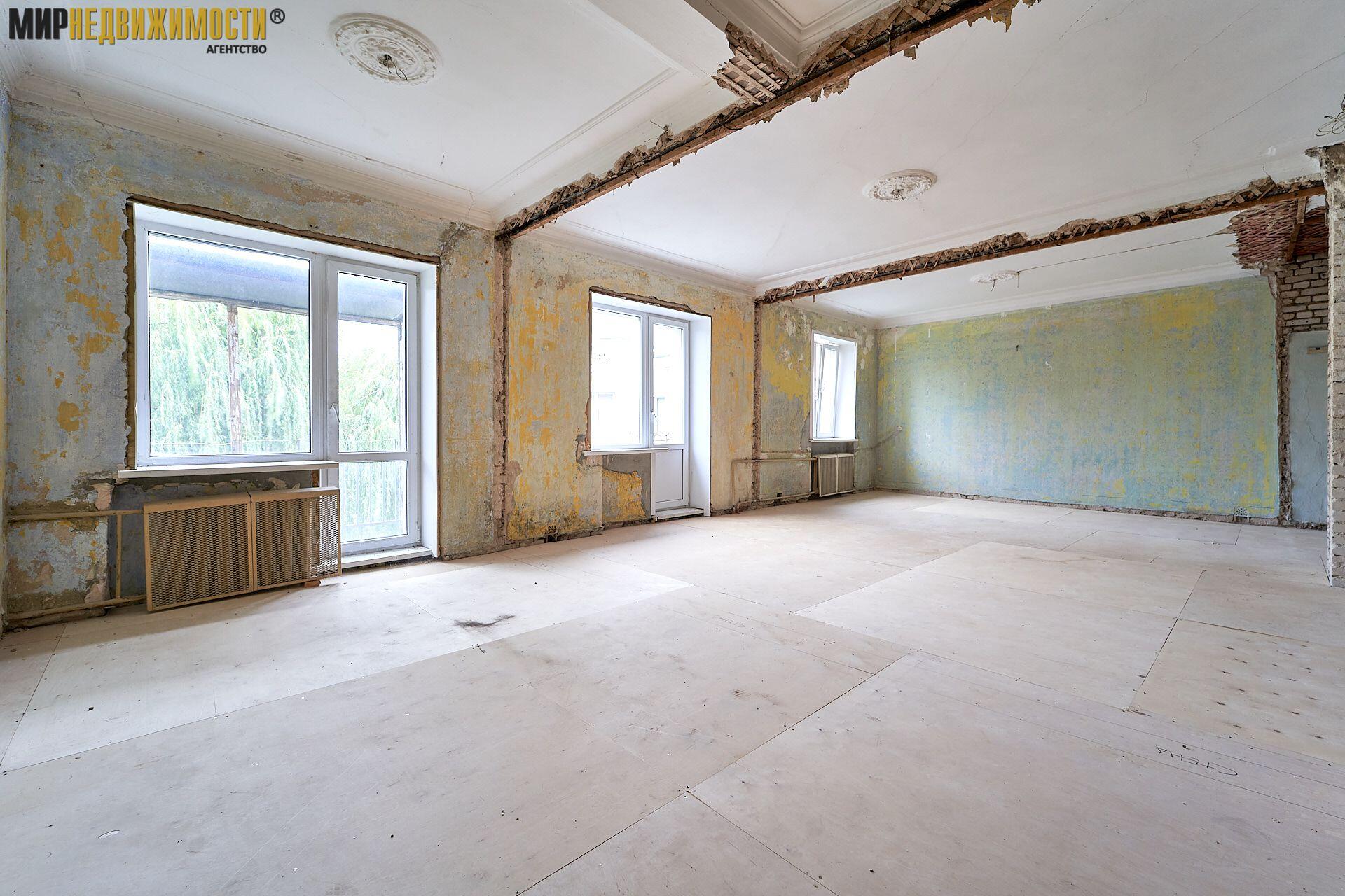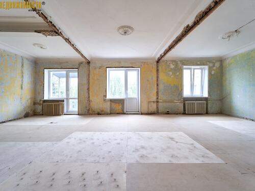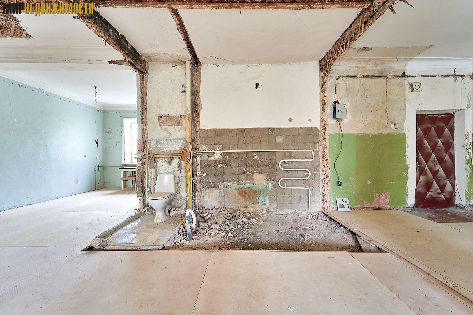 В квартире произведен демонтаж всех внутренних стен, остались только несущие колоны, что значительно уже экономит время и деньги для реализации ремонта. Двор дома утопает в зелени и высоких ивах.