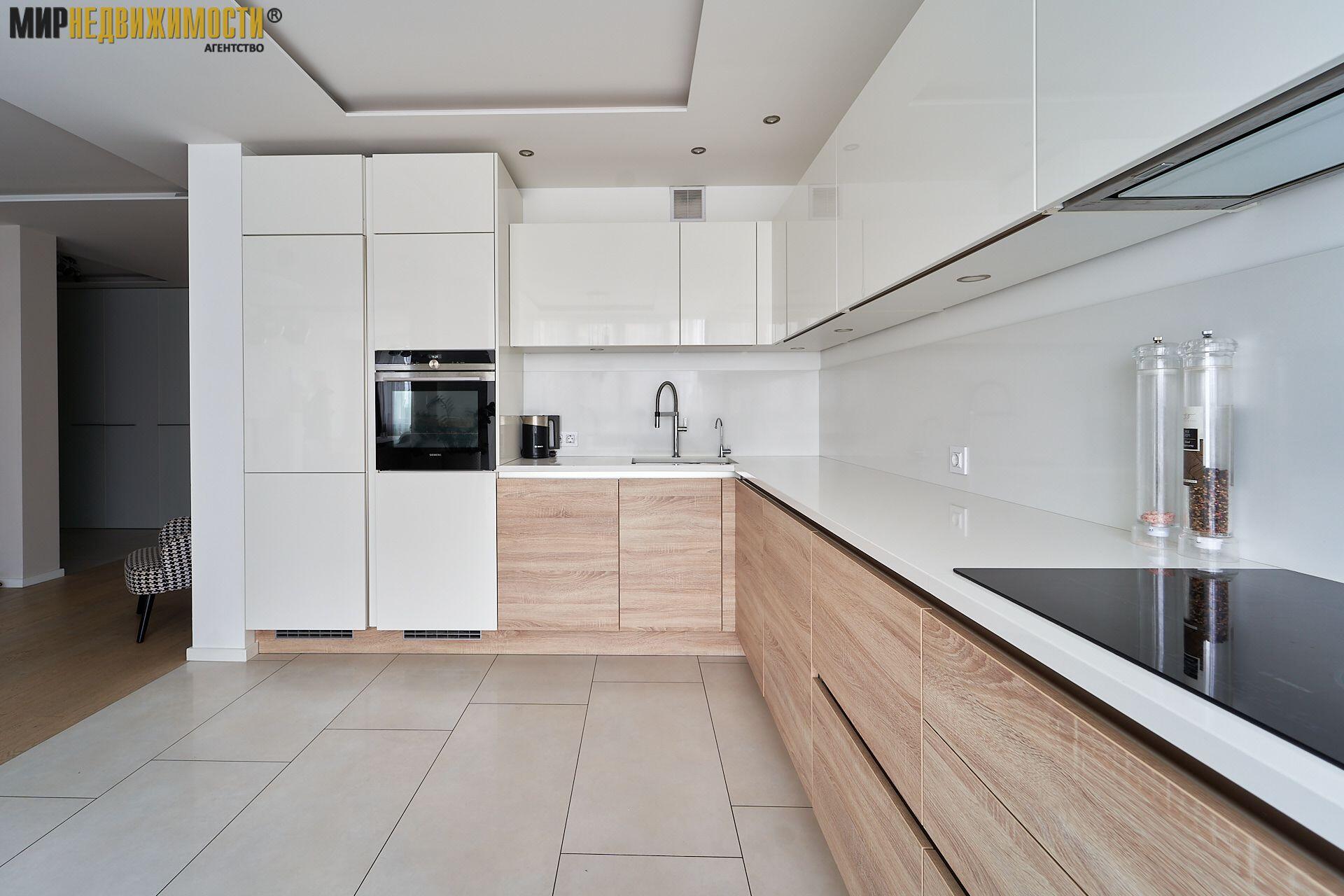- Большая кухня немецкого производства со встроенной бытовой техникой Bosch и Siemens, со встроенным холодильником и двумя морозильными камерами; каменной столешницей и барной стойкой – островом.