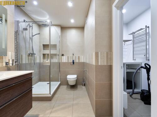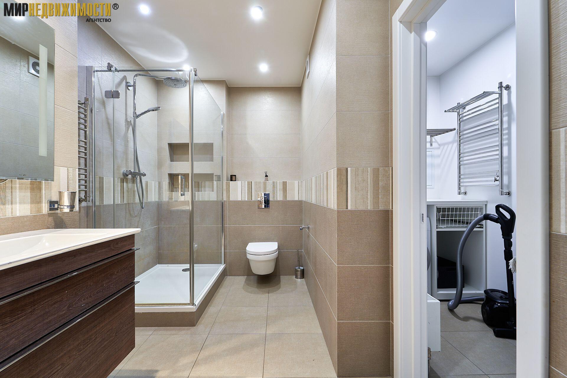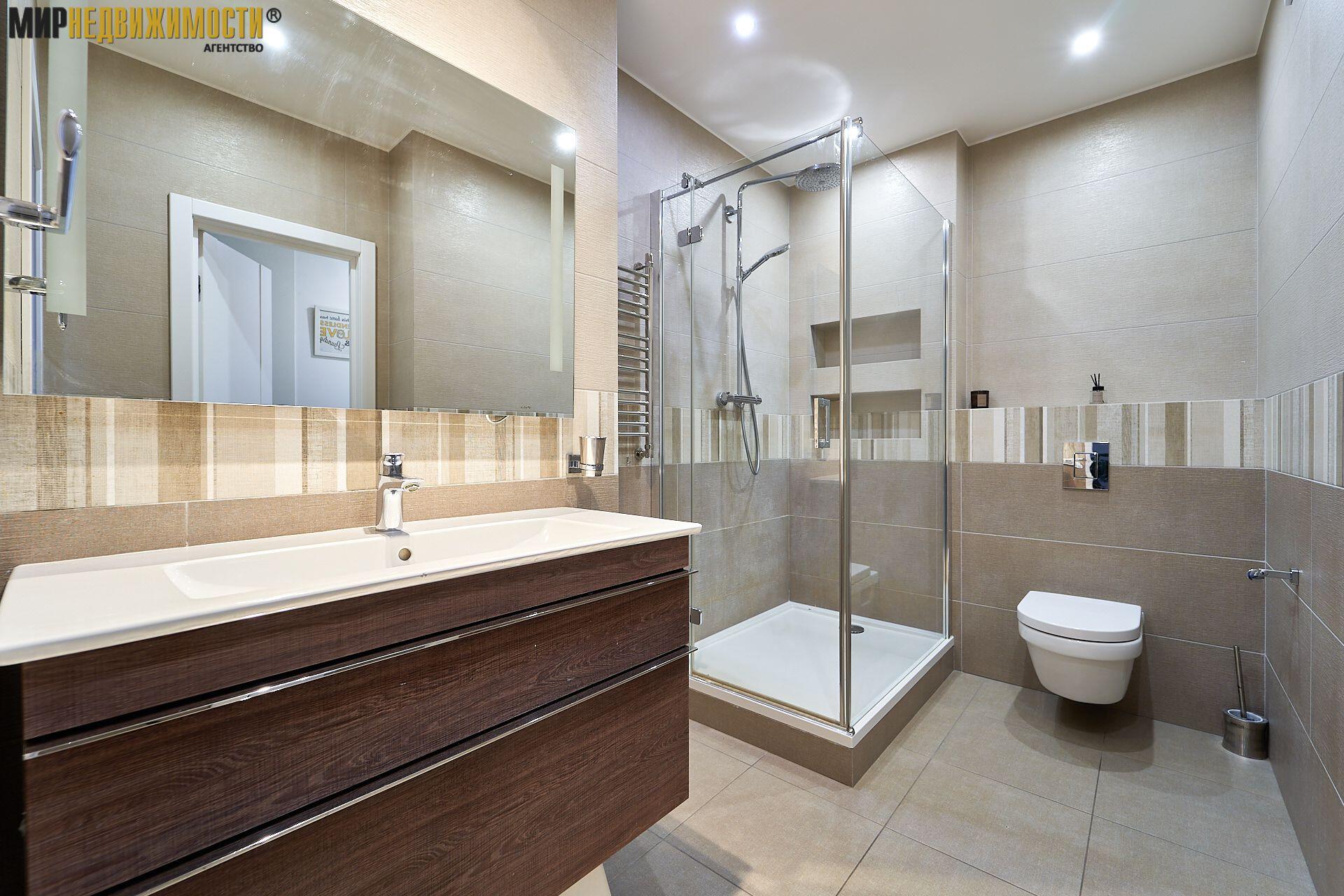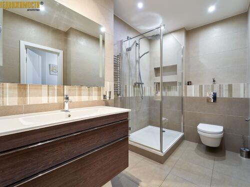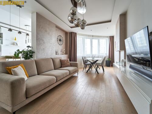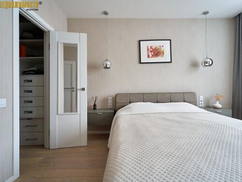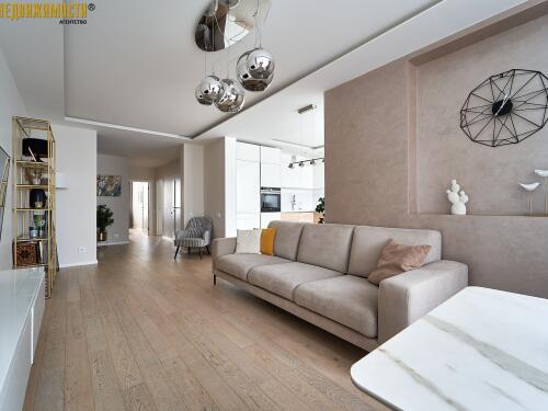 В квартире сделан дизайнерский ремонт с использованием качественных материалов, пол - паркетная доска, в санузлах испанская и итальянская плитка, сантехника премиум класса Villeroy&boch и Hansgrohe.