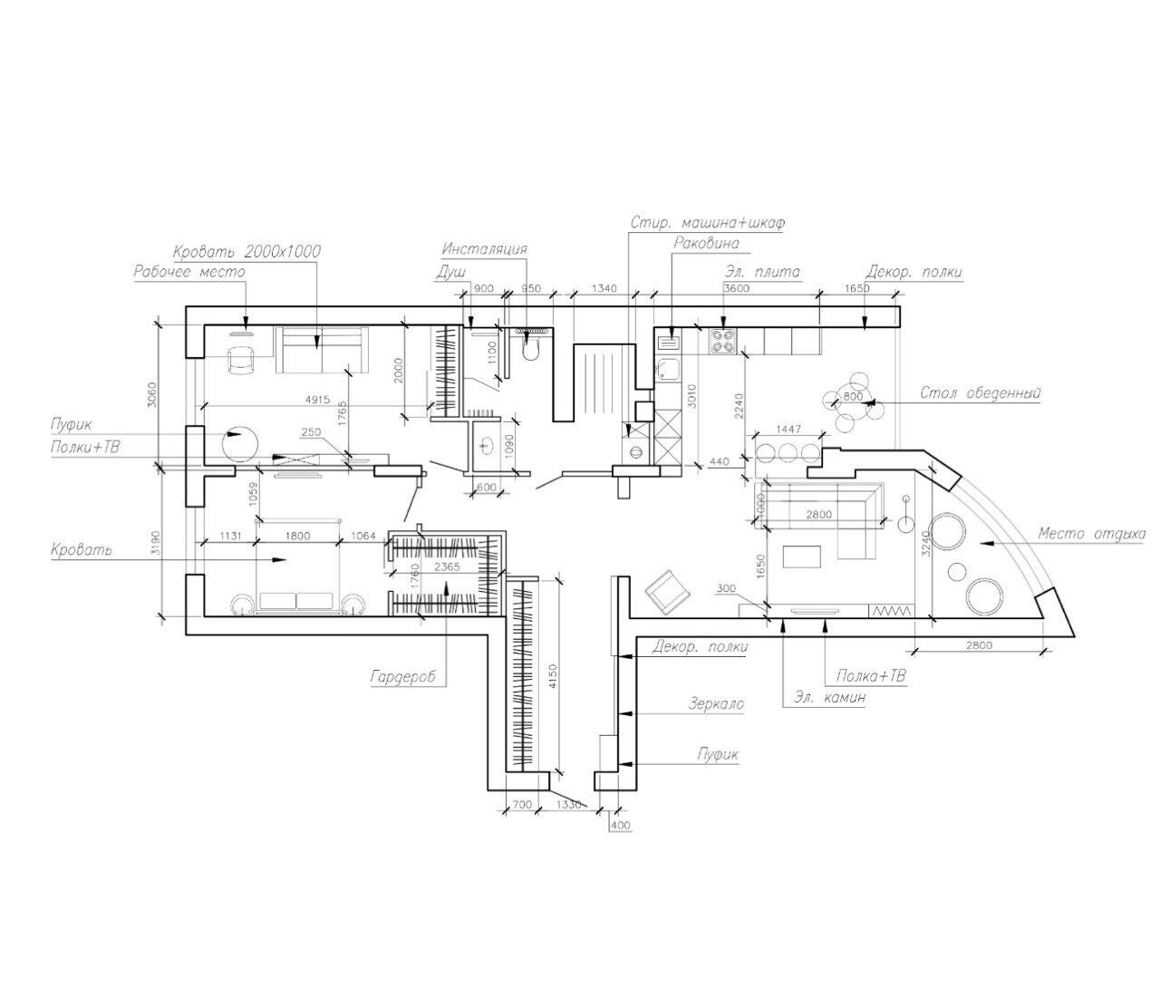 - Гостиная с большим диваном и столом из керамогранита в столовой зоне.