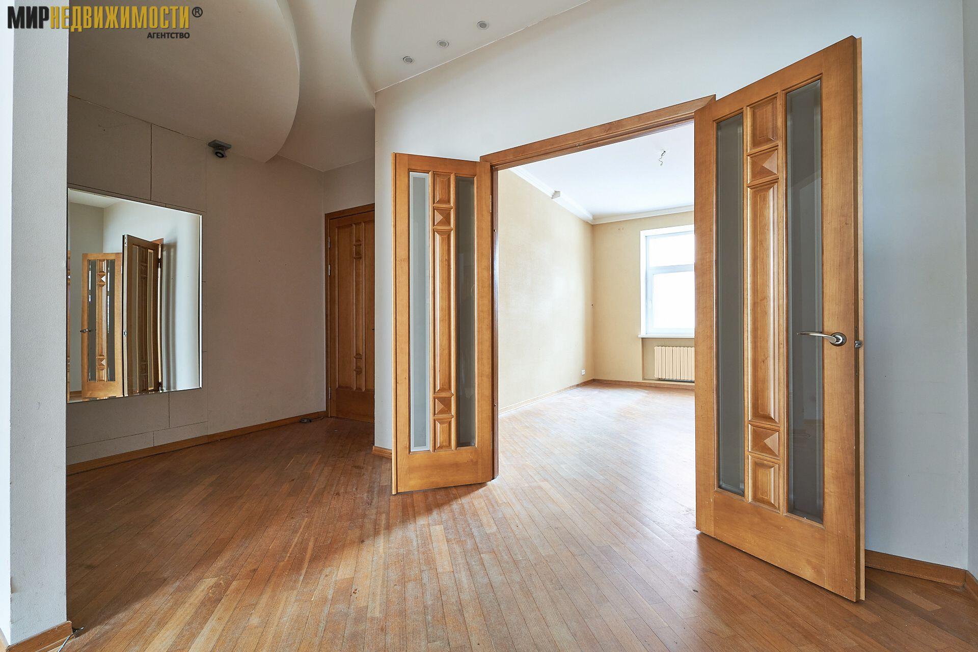 На улице Коммунистической, д.14, рядом с Площадью Победы, продаётся трёхкомнатная квартира. Если встанет выбор, какой дом в Минске назвать символом города, это он - легендарный «Дом под шпилем».