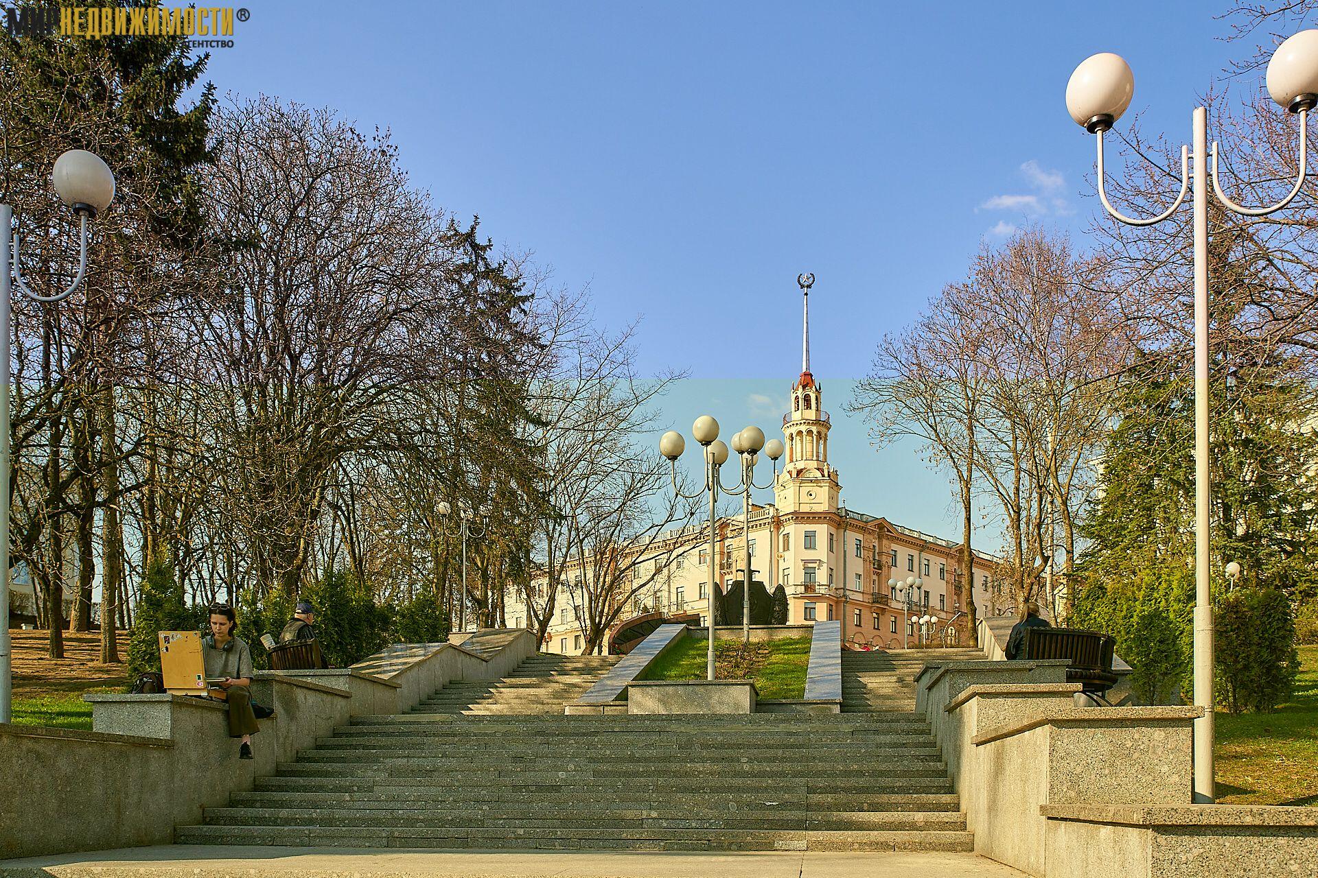 Идеальная локация в центре столицы: рядом сквер им. Марата Казея и парк им. Горького, набережная Свислочи, оперный театр, Троицкое предместье, галереи и кинотеатры.