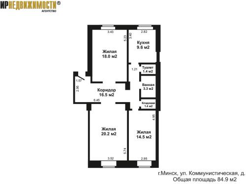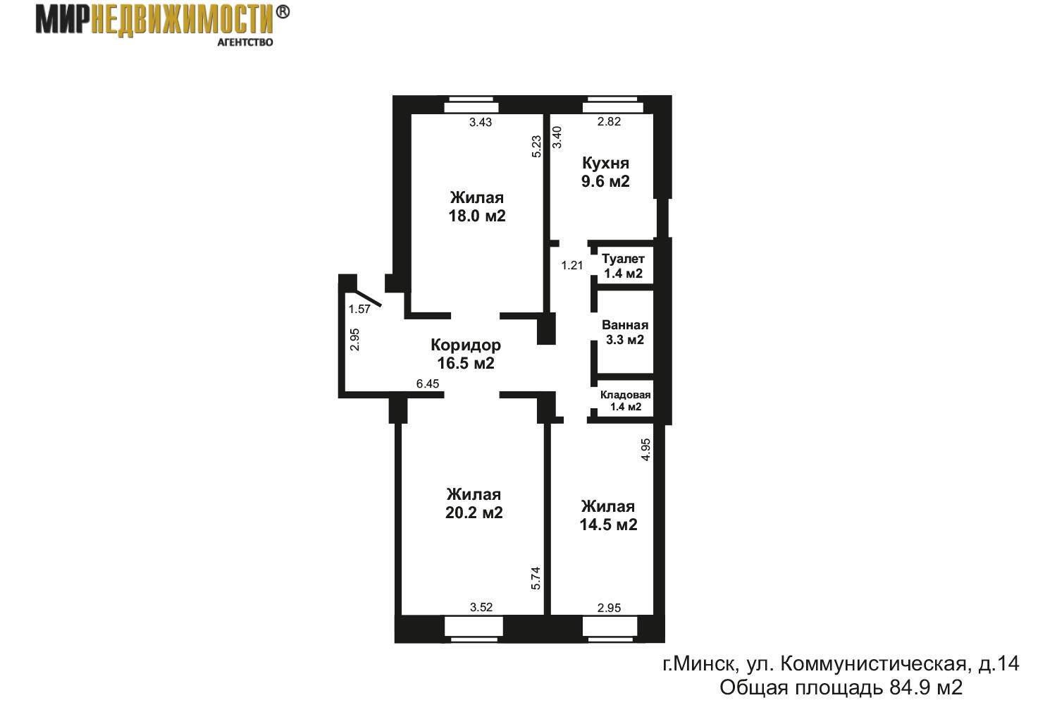 Общая площадь 84,9 м2, жилая площадь 52,7 м2, кухня 9,6 м2, 2/5 этажного кирпичного дома. 1952 г.п. Высота потолков 3,23 м.