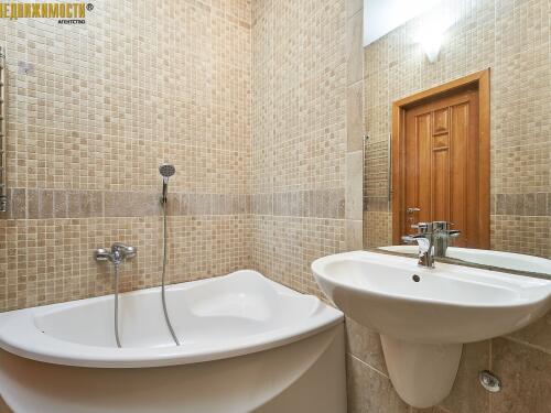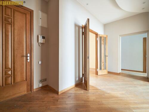 В квартире сделана шумоизоляция, установлены качественные стеклопакеты и подоконники из акрила 40 см. Напольное покрытие - паркет. Межкомнатные двери - массив ольхи. В санузлах - испанская плитка.