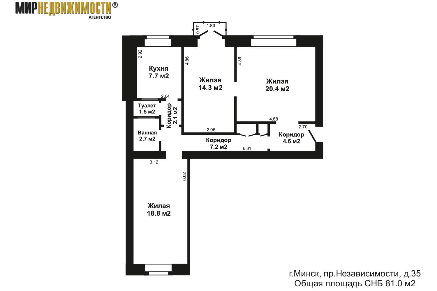 Продается 3-комнатная «Сталинка» в центре Минска. Пр.Независимости, д.35