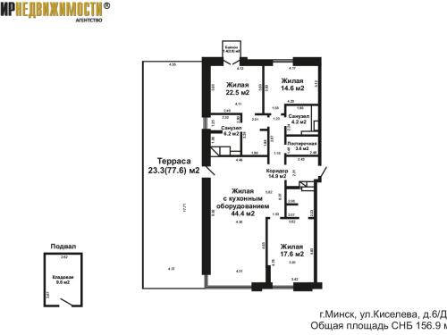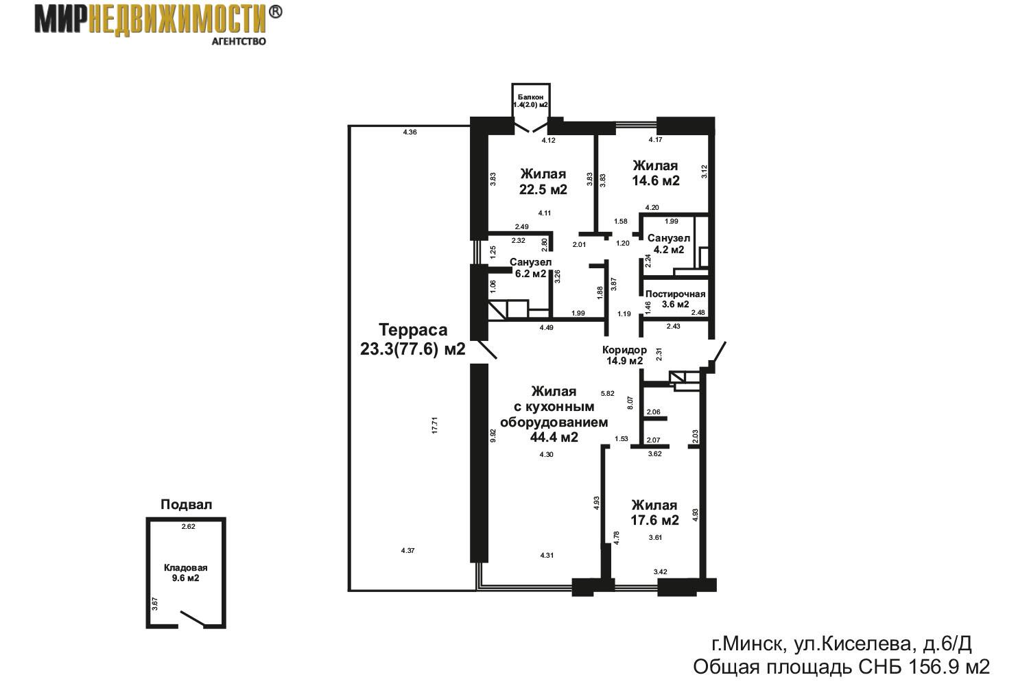Общая площадь 132,2 м2, общая площадь по СНБ 156,9 м2, жилая площадь 99,1 м2.