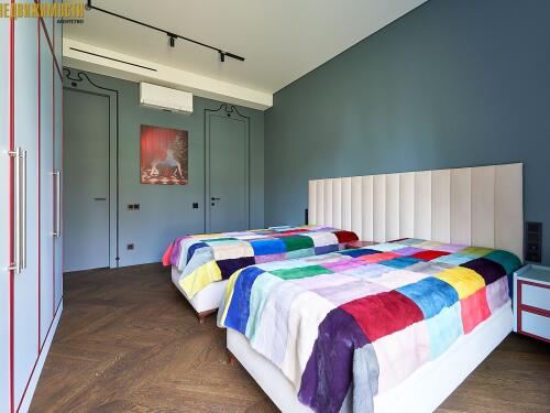 В квартире выполнена эргономичная планировка, 3 раздельные спальни с продуманными местами хранения + просторная кухня-гостиная с выходом на террасу. 3 совмещенных санузла, постирочная. Так же к квартире закреплена кладовая (9,6 м2) на подвальном этаже.