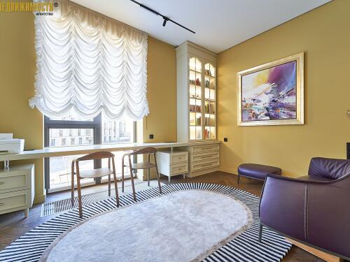 Мебель: итальянский диван Flexform. Текстиль: портьеры из бельгийской и английской ткани, ковер Carpet Décor.