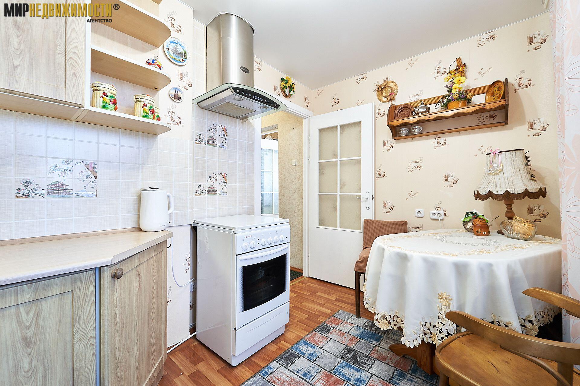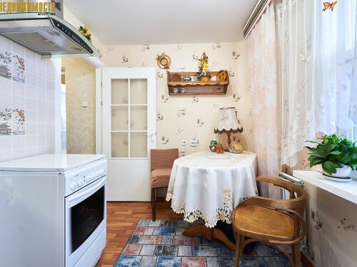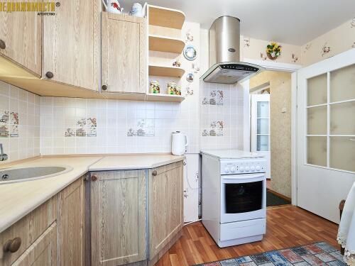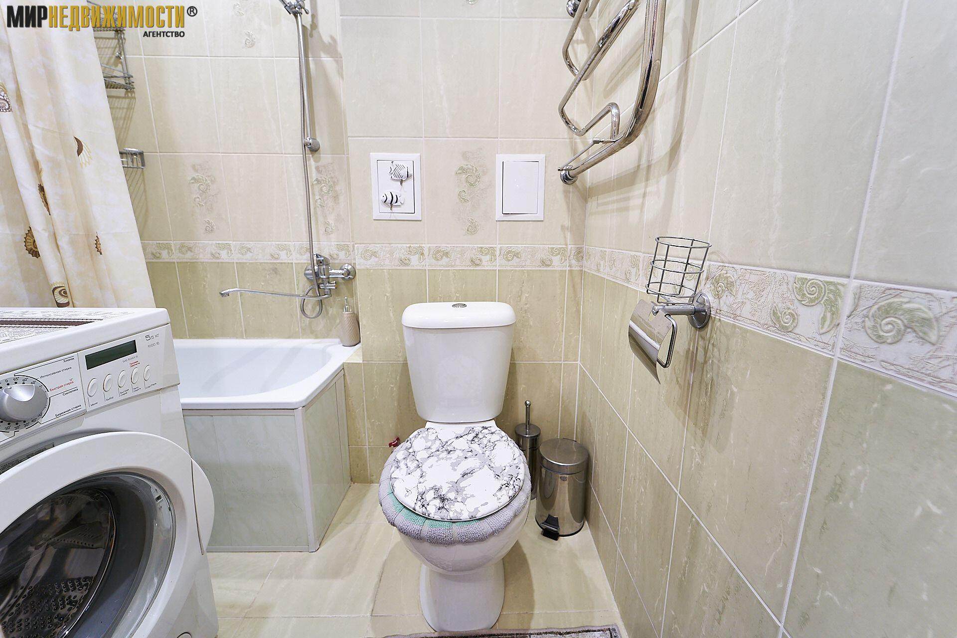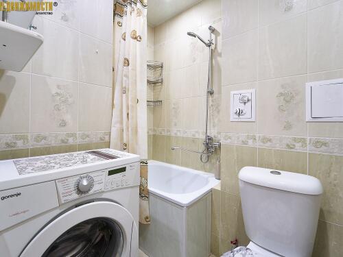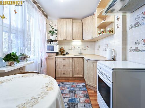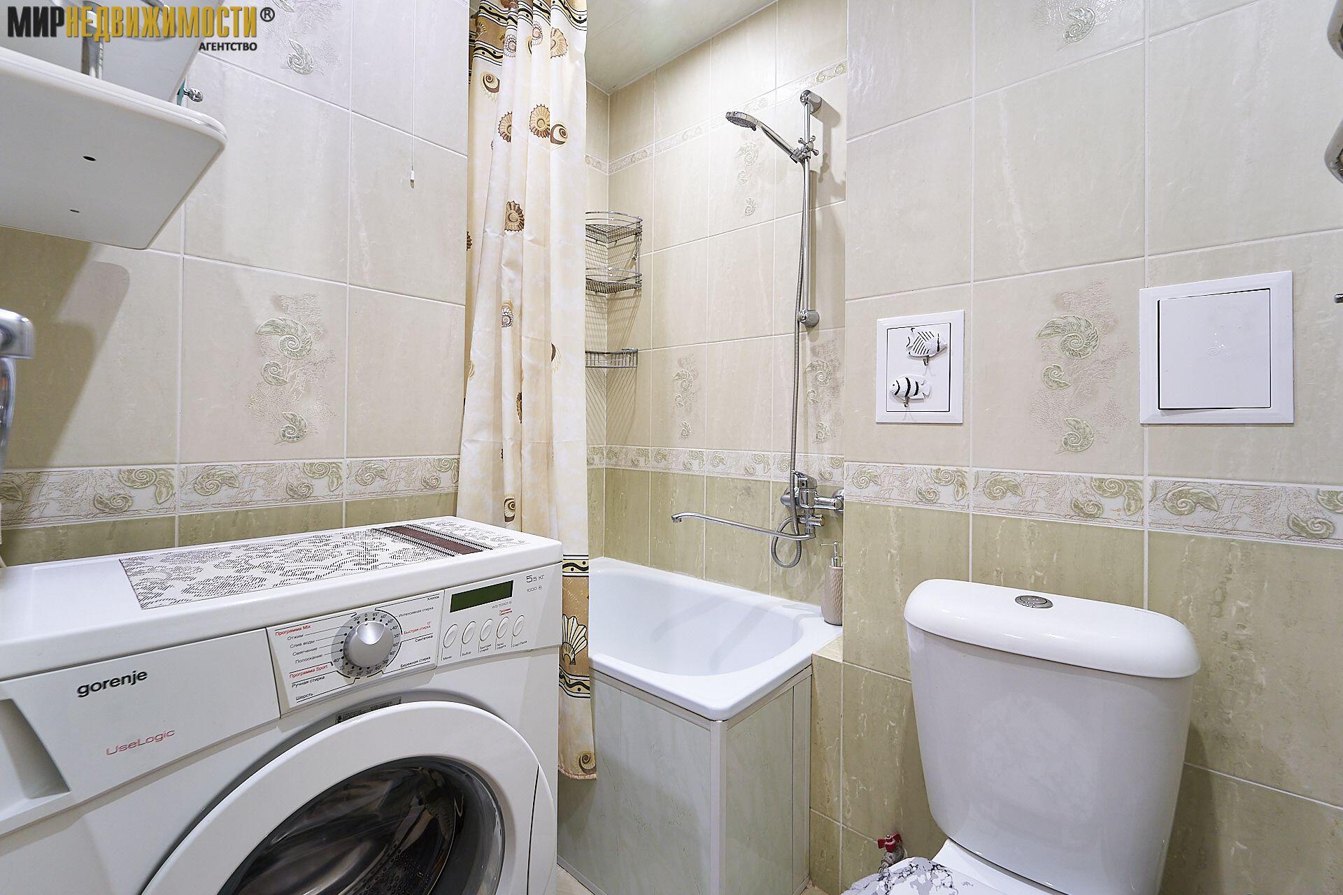 В квартире остается вся необходимая мебель и техника: кухонная мебель, обеденная группа, холодильник, стиральная машина, в комнате диван, горка, столик, шкафчик в прихожей. Совмещенный санузел с компактной ванной. Металлическая дверь.