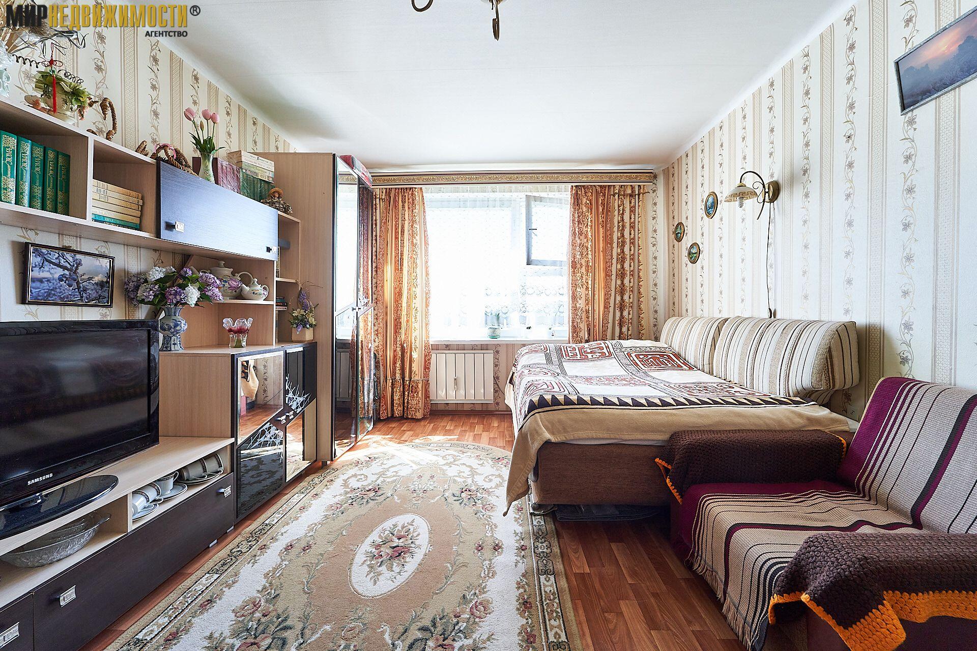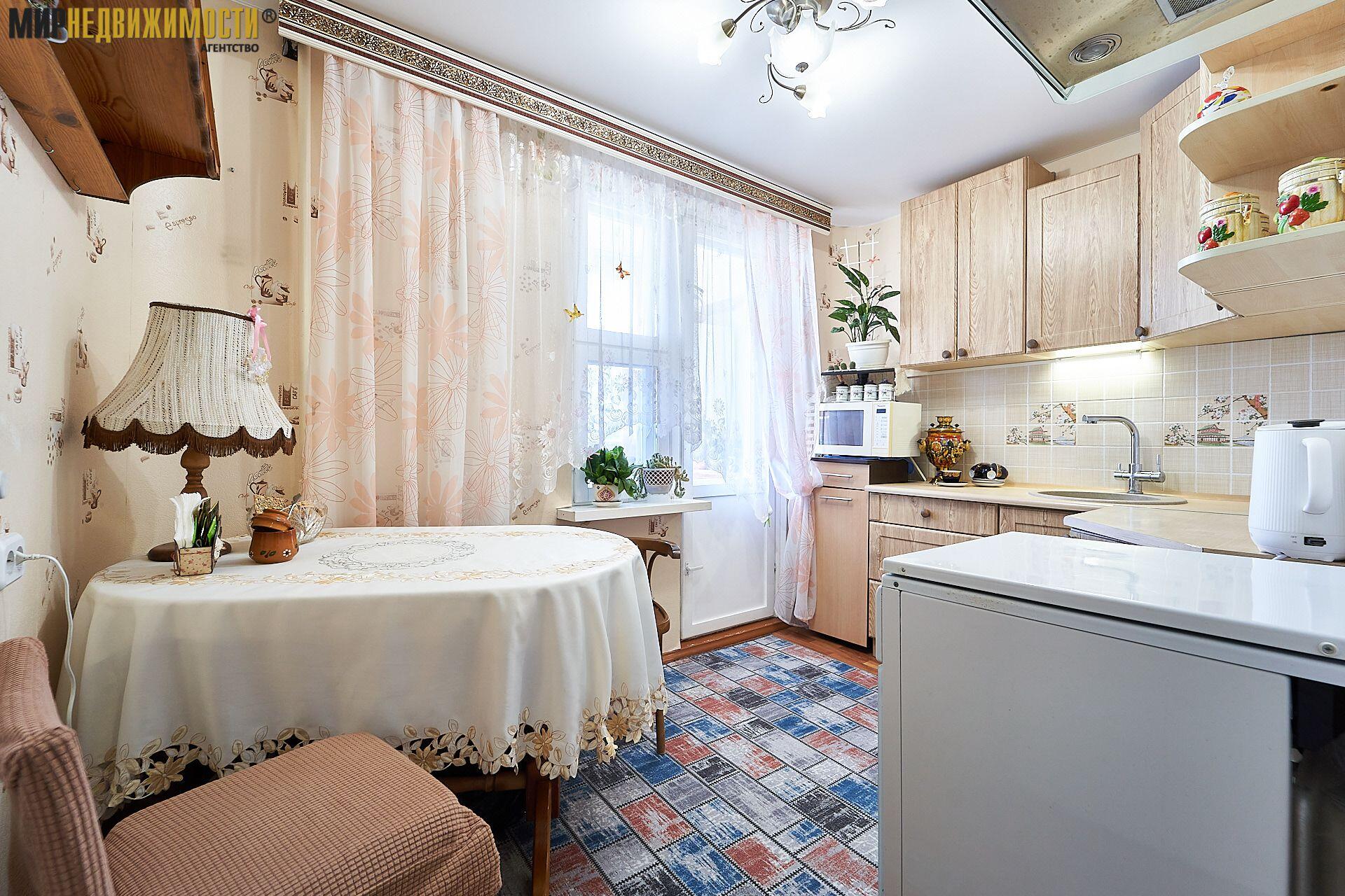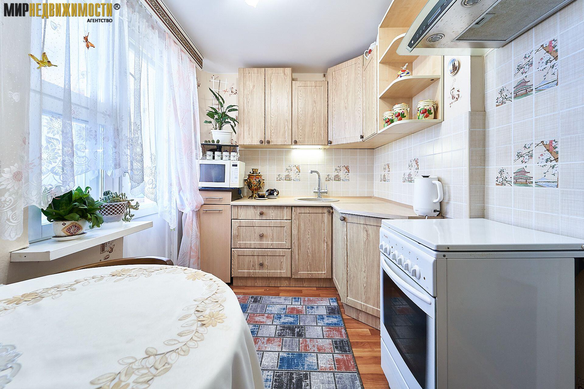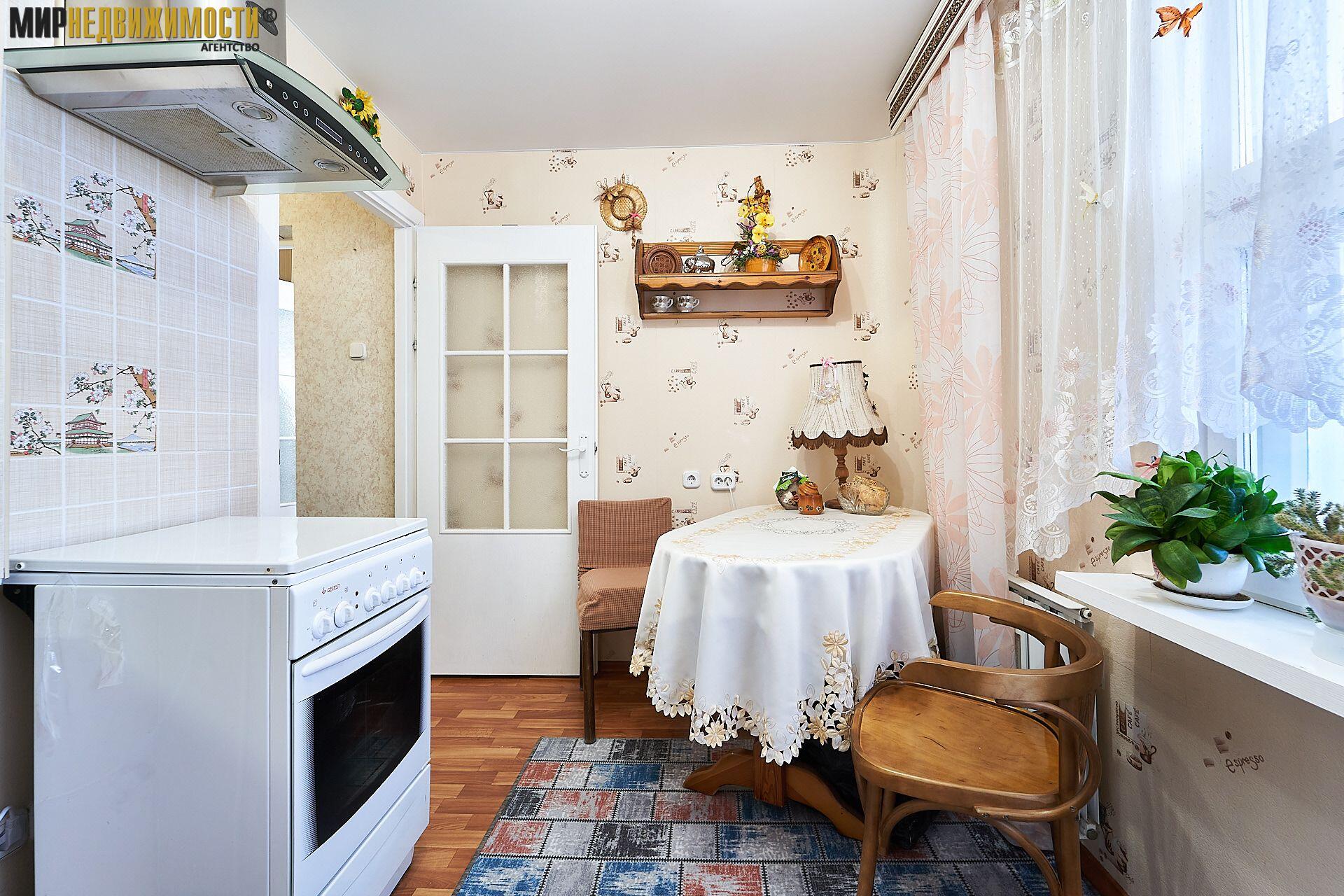 В квартире остается вся необходимая мебель и техника: кухонная мебель, обеденная группа, холодильник, стиральная машина, в комнате диван, горка, столик, шкафчик в прихожей. Совмещенный санузел с компактной ванной. Металлическая дверь.