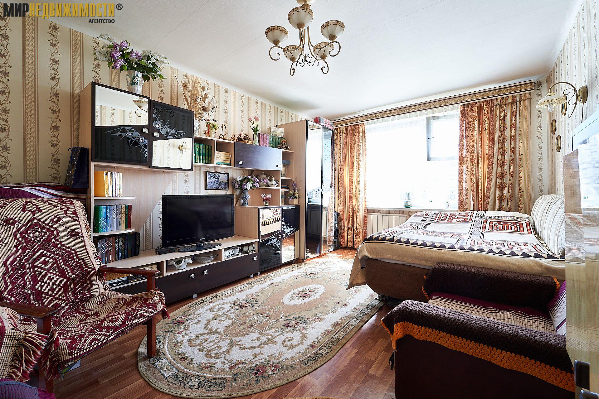 Большая светлая комната, кухня с выходом на просторную лоджию. Отличный вид из окон на зеленую зону.